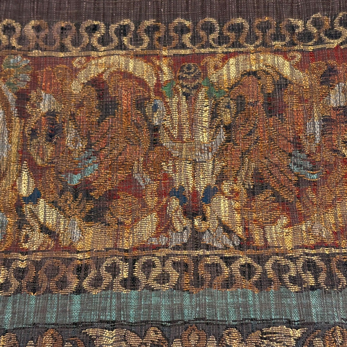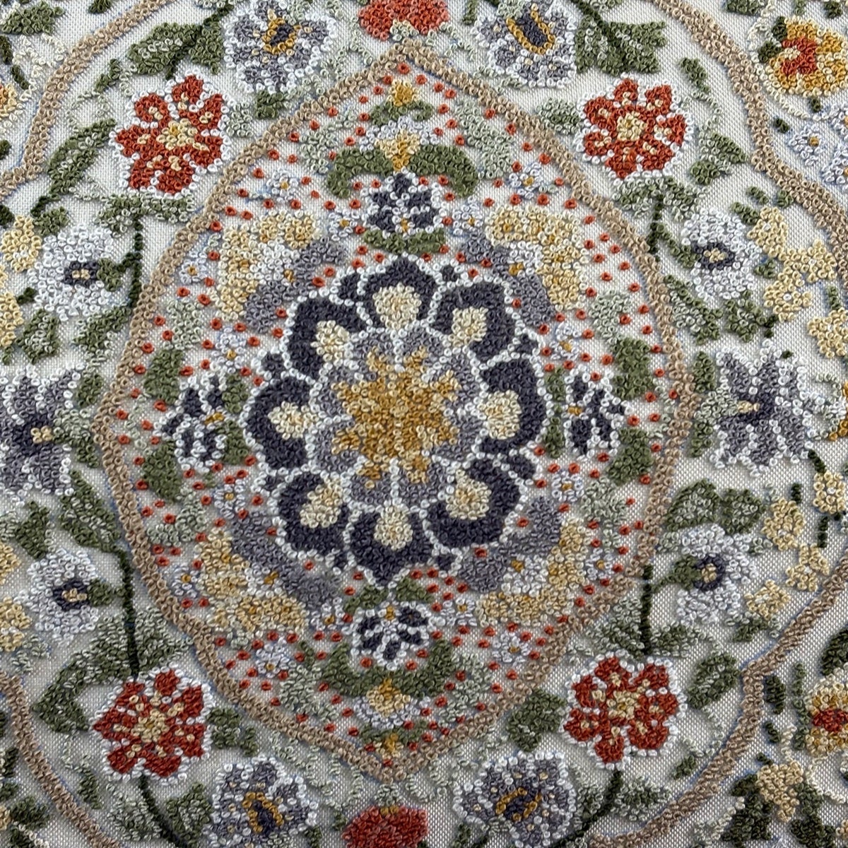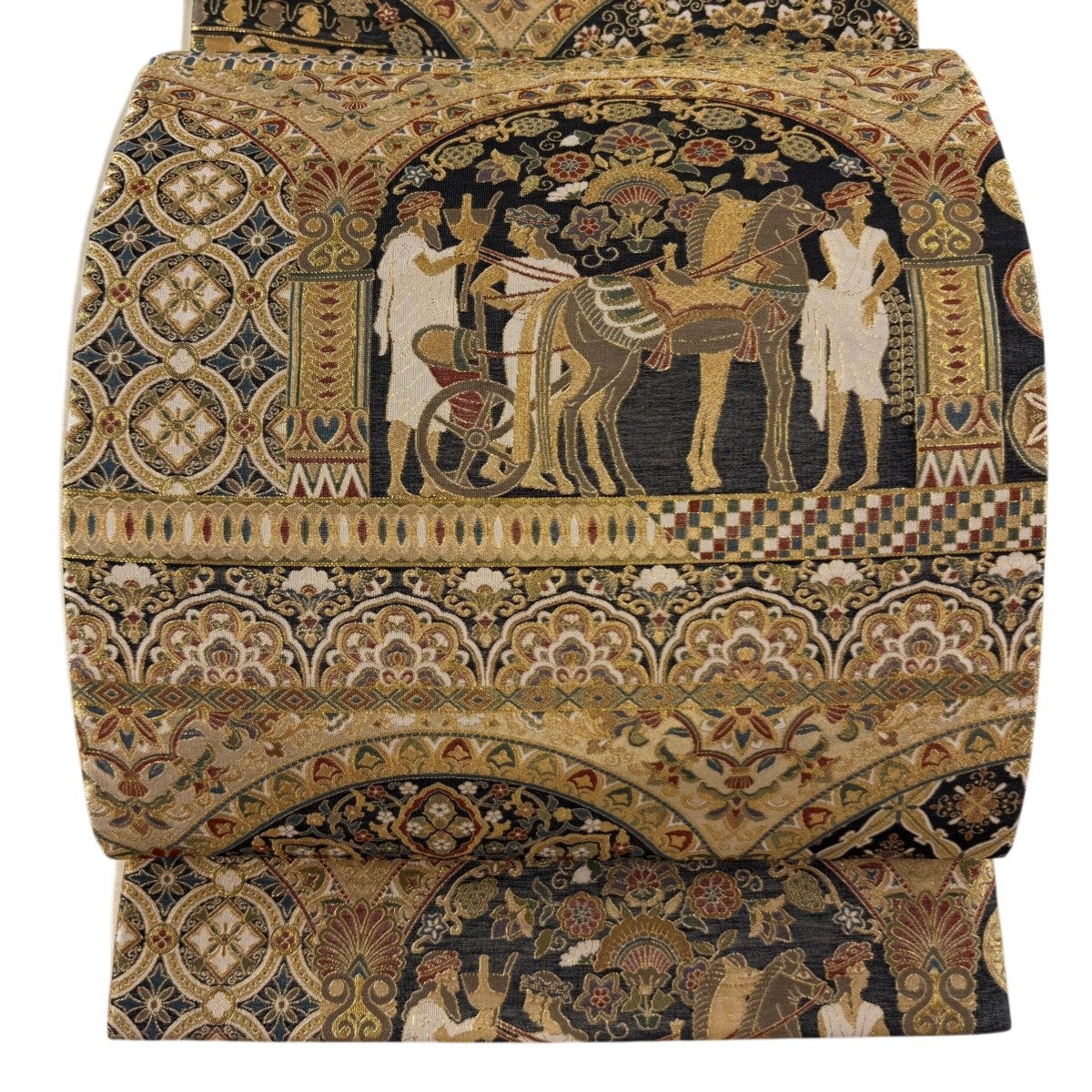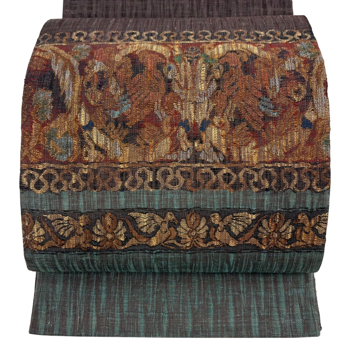 袋帯 逸品 華文 花唐草 刺繍 金糸 ベージュ 全通 正絹