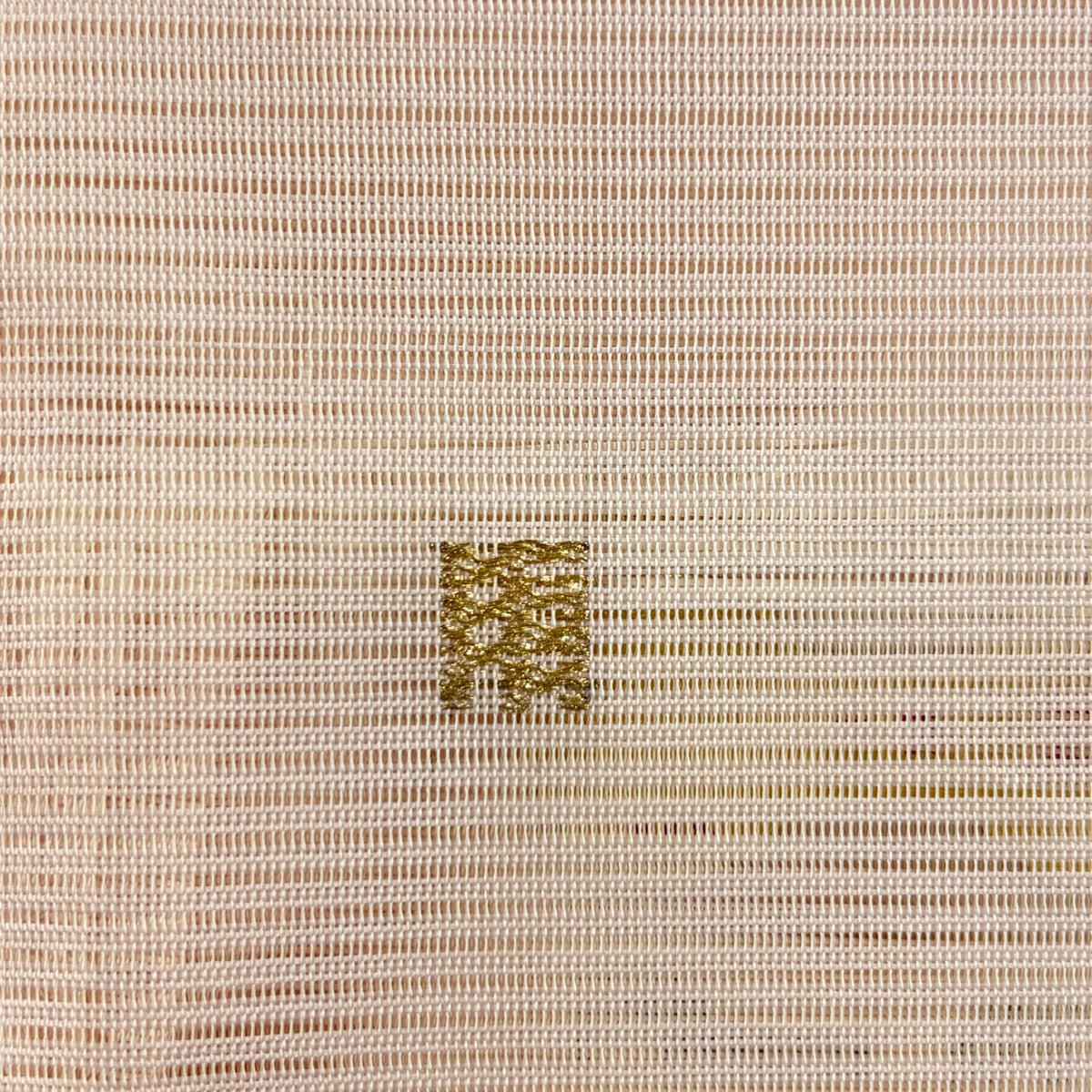【美品】 名古屋帯 秀品 八寸名古屋帯 松葉仕立て 夏帯 よろけ縞 金糸 ピンクベージュ 正絹
