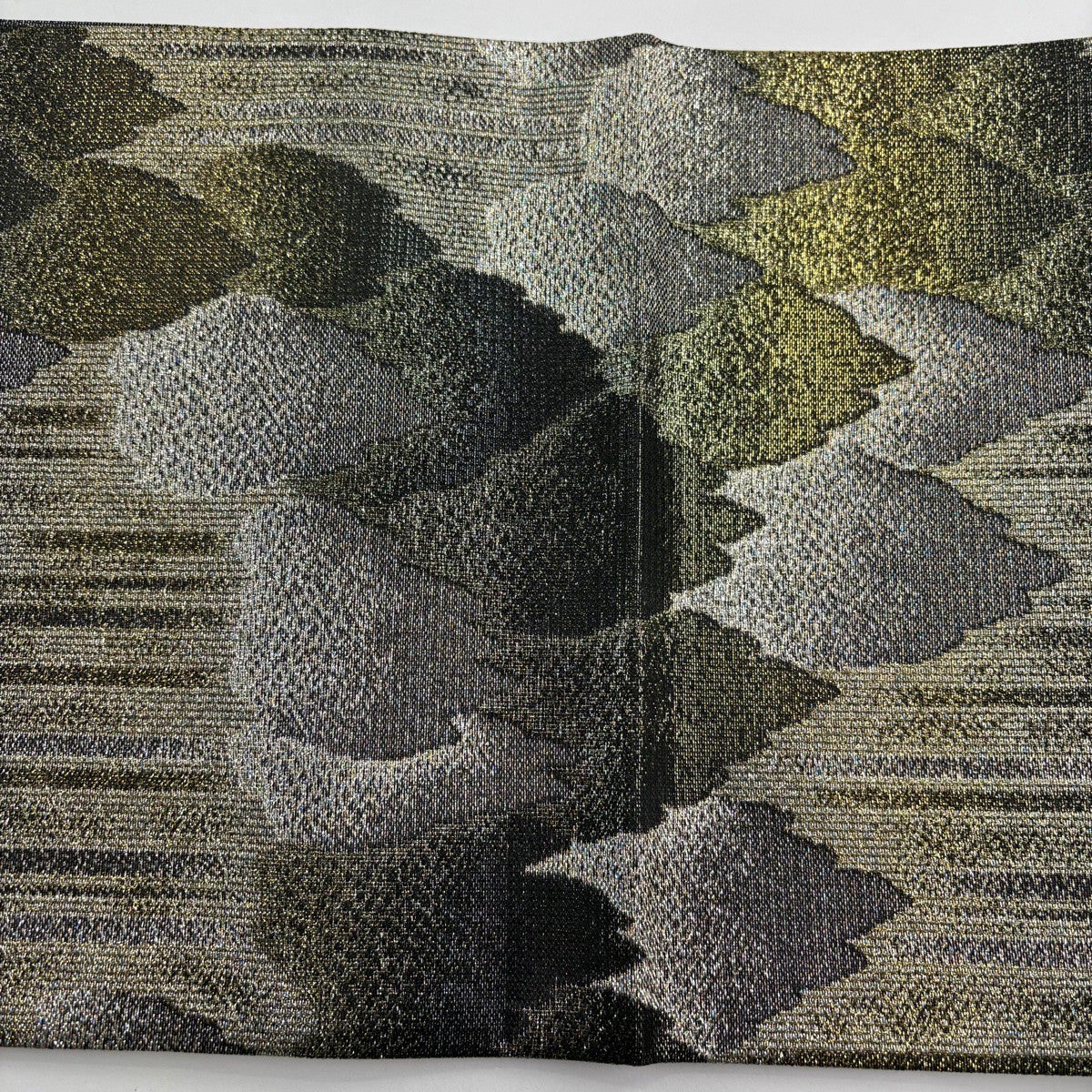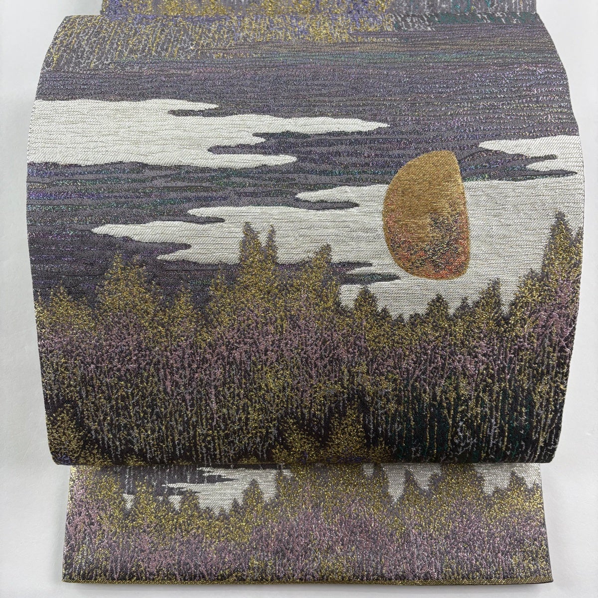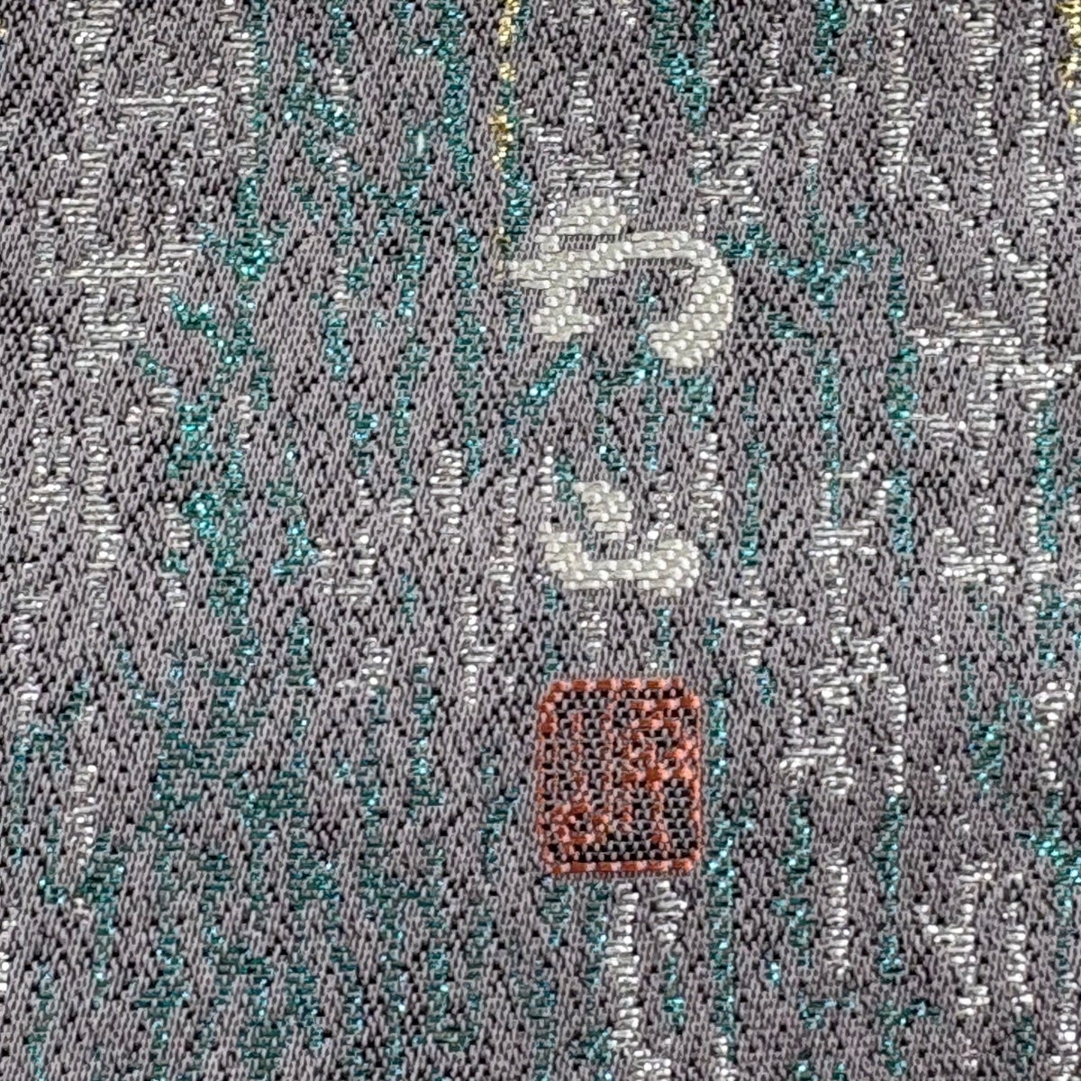 【美品】 袋帯 逸品 佐波理 落款あり 北山定 樹木 縞 箔 銀糸 黒 六通 正絹