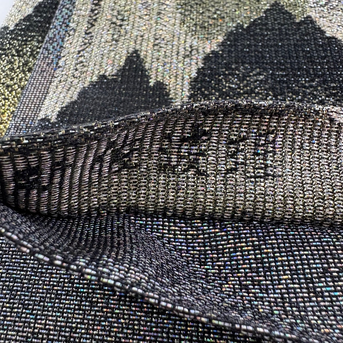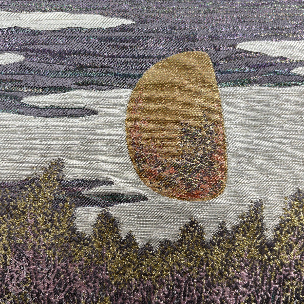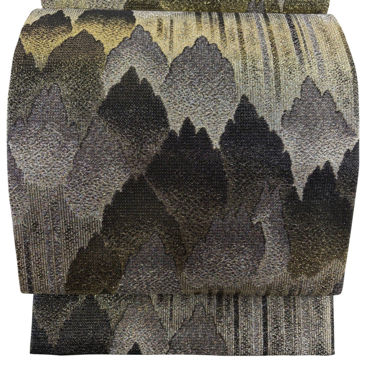 【美品】 袋帯 逸品 佐波理 落款あり 北山定 樹木 縞 箔 銀糸 黒 六通 正絹