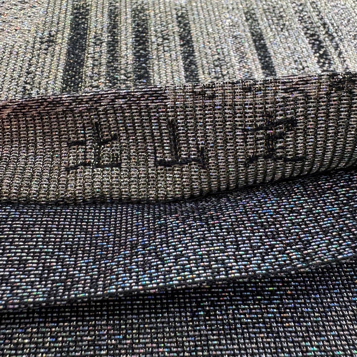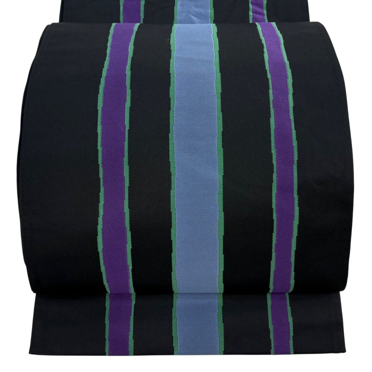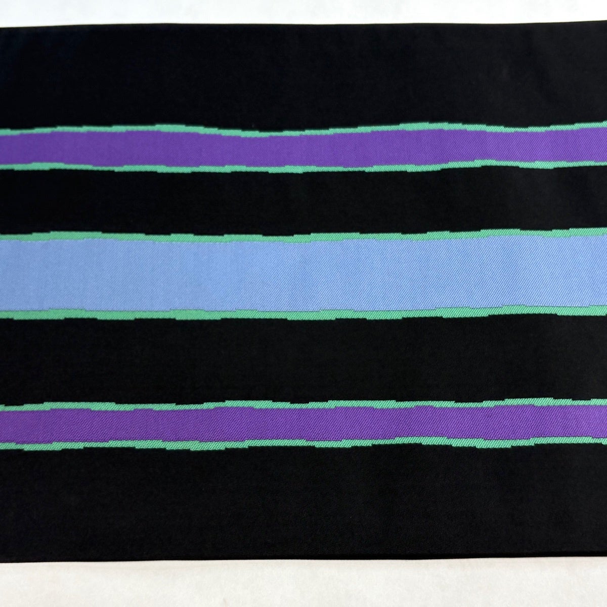 【美品】 名古屋帯 秀品 夏帯 トンネル仕立て 縞 幾何学模様 黒 正絹