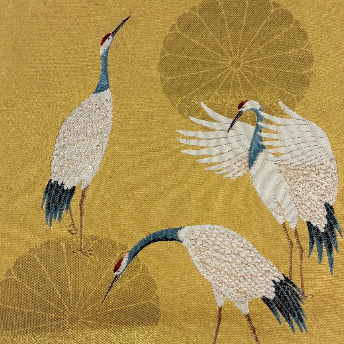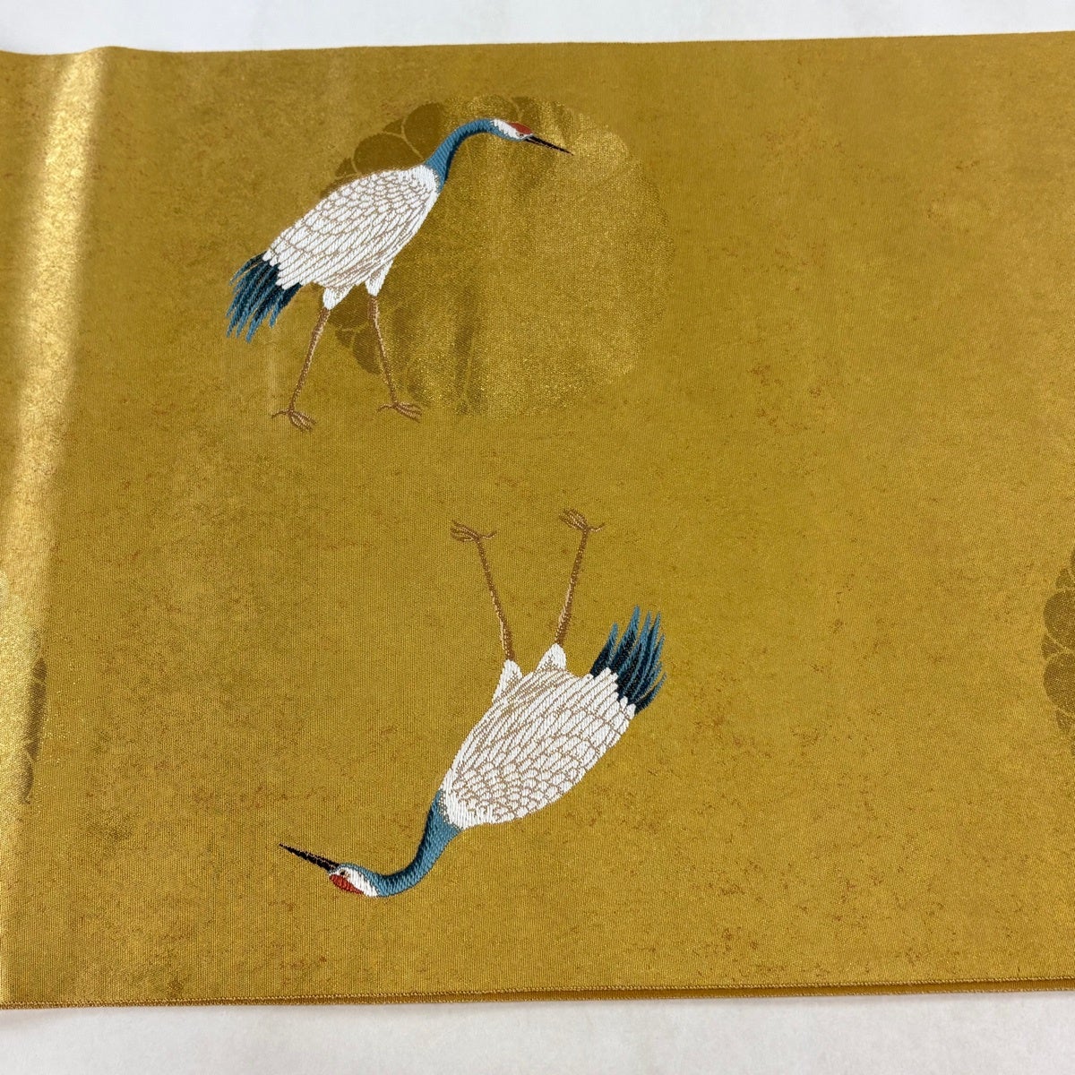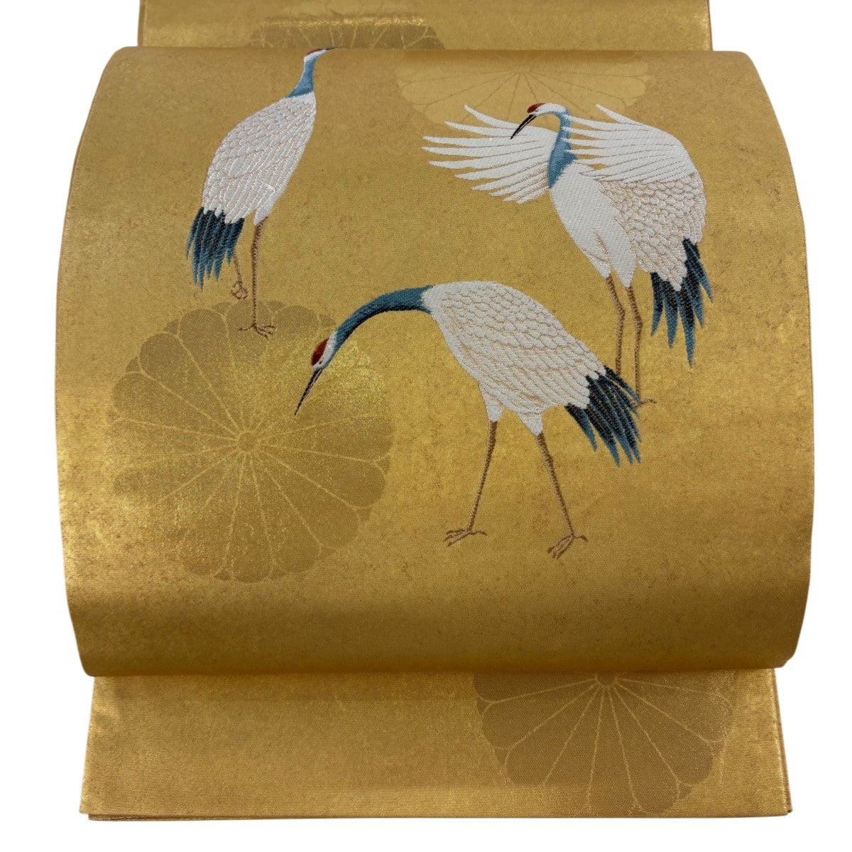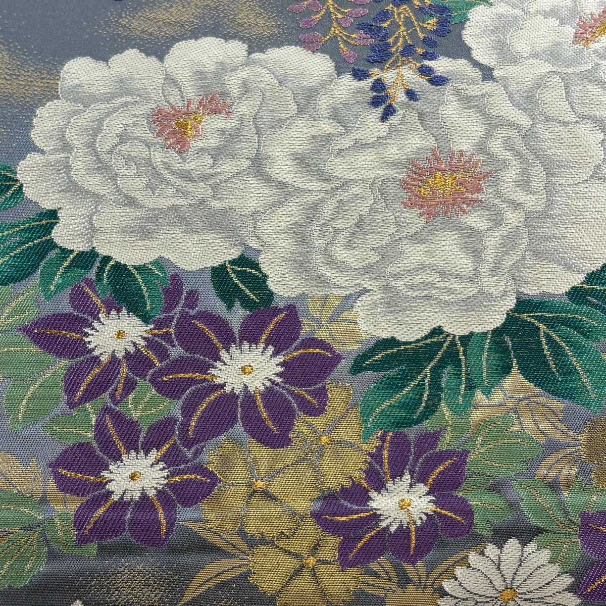 【美品】 丸帯 逸品 花鳥画天井絵巻 草花 プラチナ本金箔 金色 全通 正絹