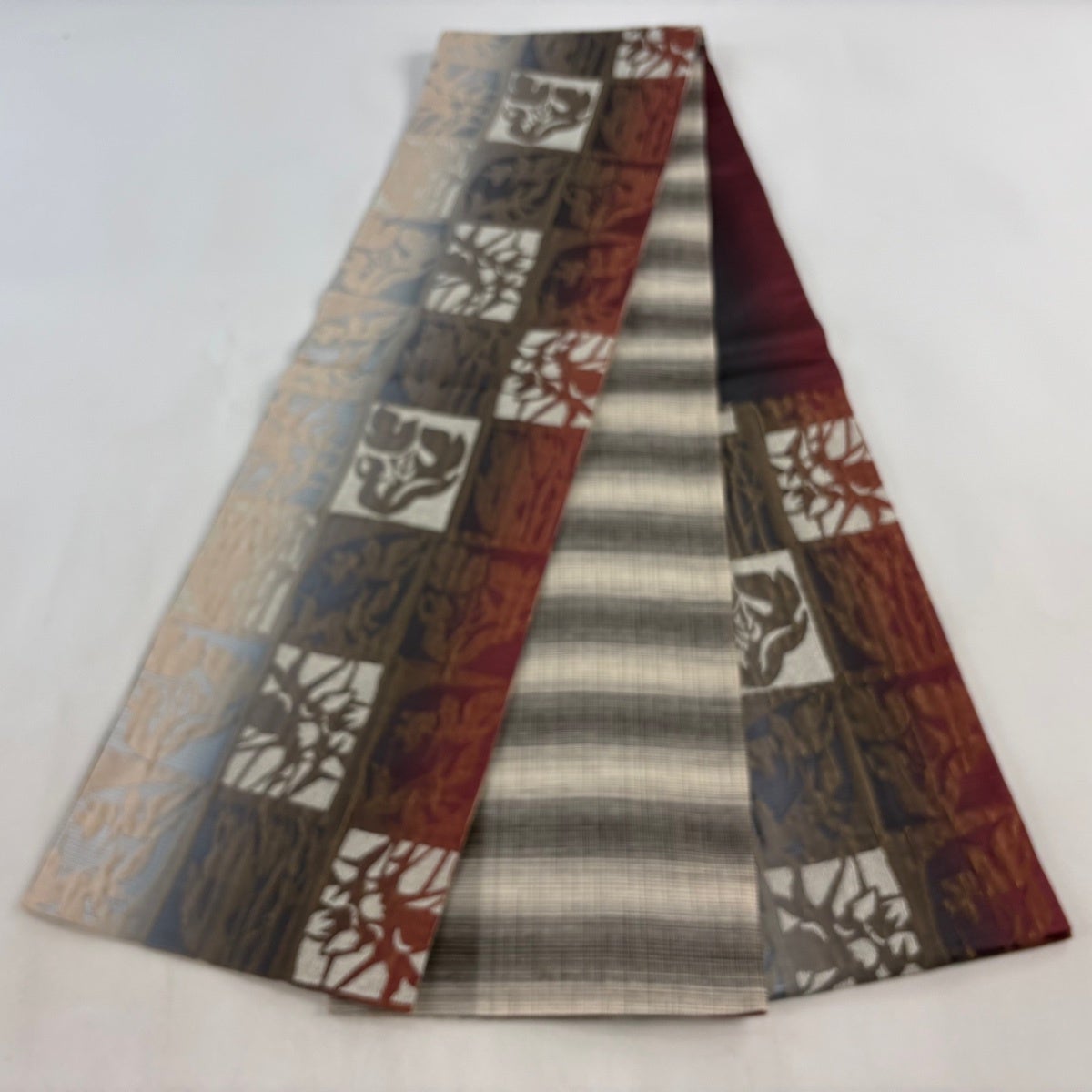 【美品】 名古屋帯 秀品 夏帯 幾何学模様 赤茶 正絹