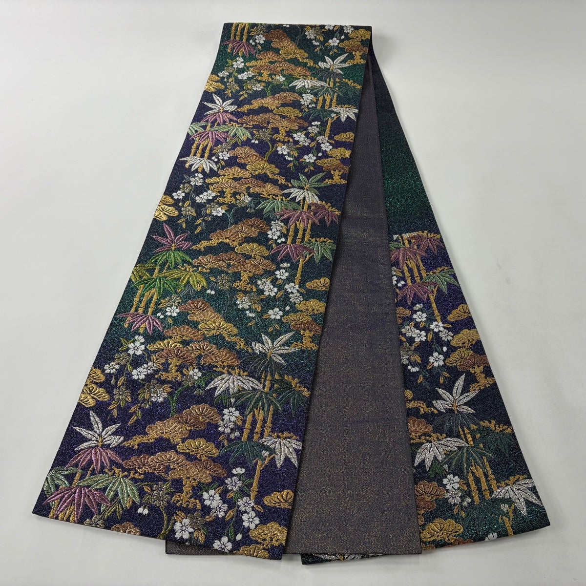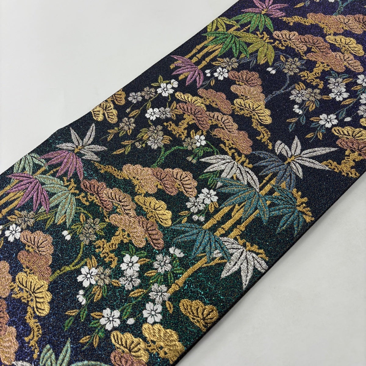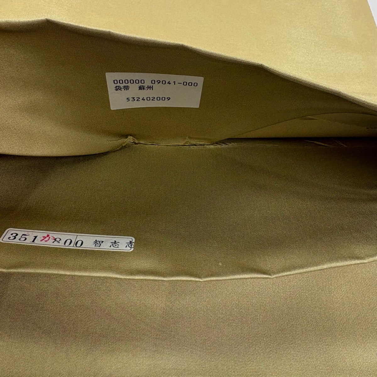 袋帯 秀品 若松 箔 金糸 金色 六通 正絹