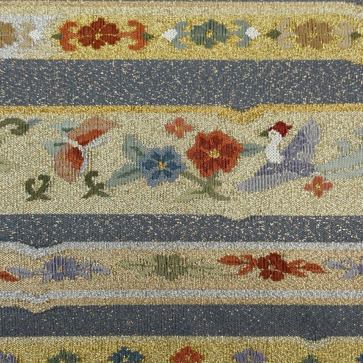 【美品】 袋帯 名品 花鳥 蝶 金銀糸 箔 灰色 お太鼓柄 正絹