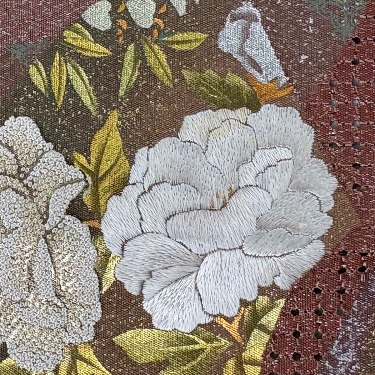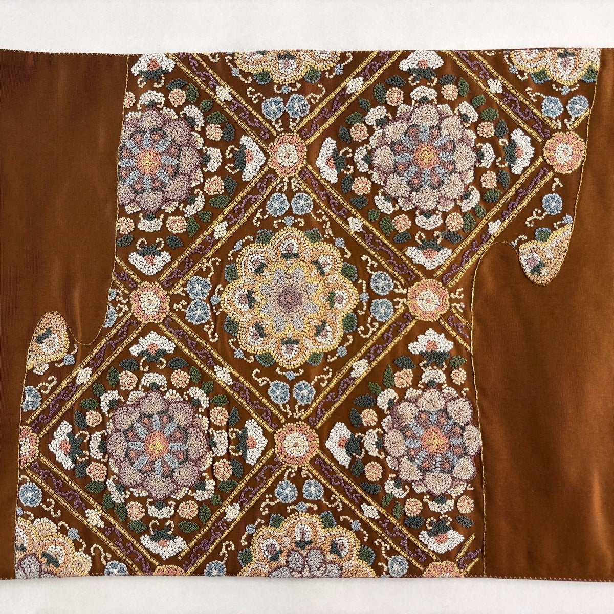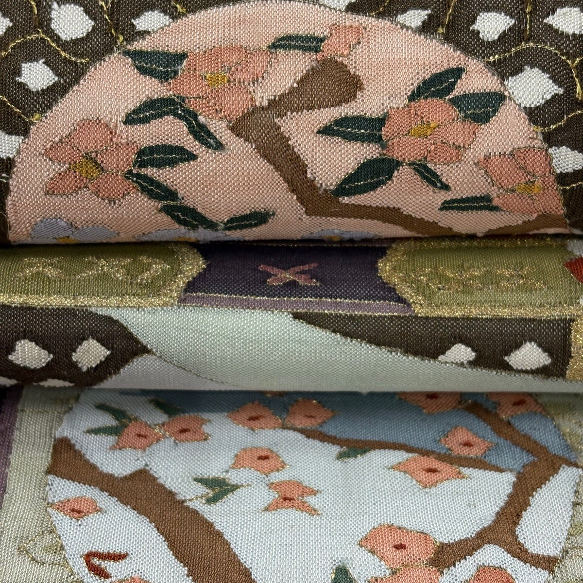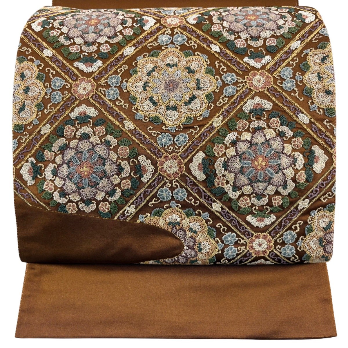 袋帯 秀品 秋草 唐織 赤茶 六通 正絹