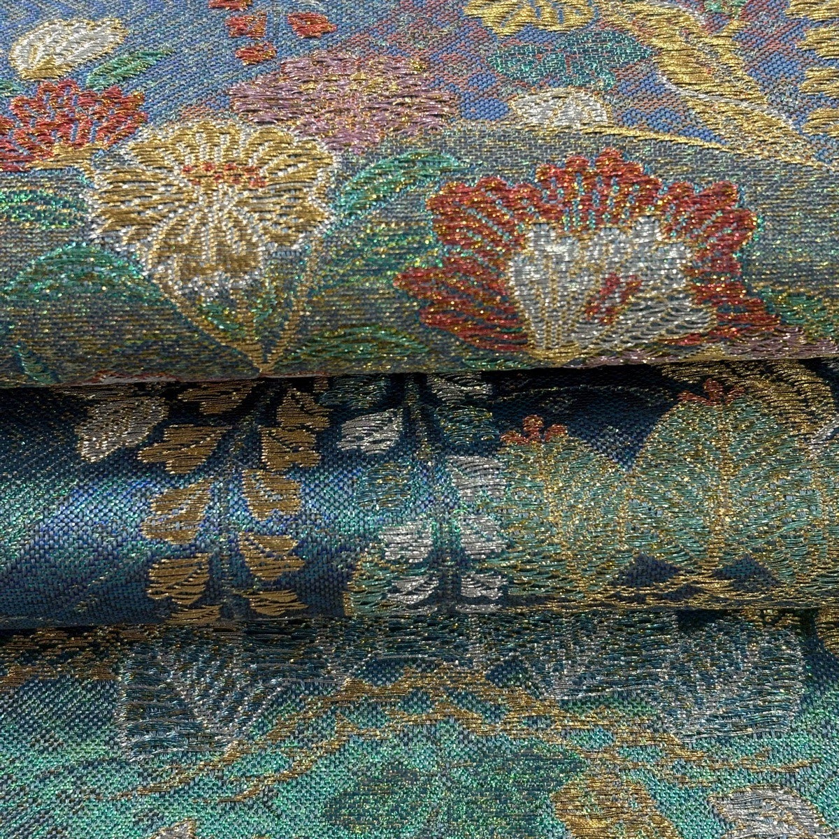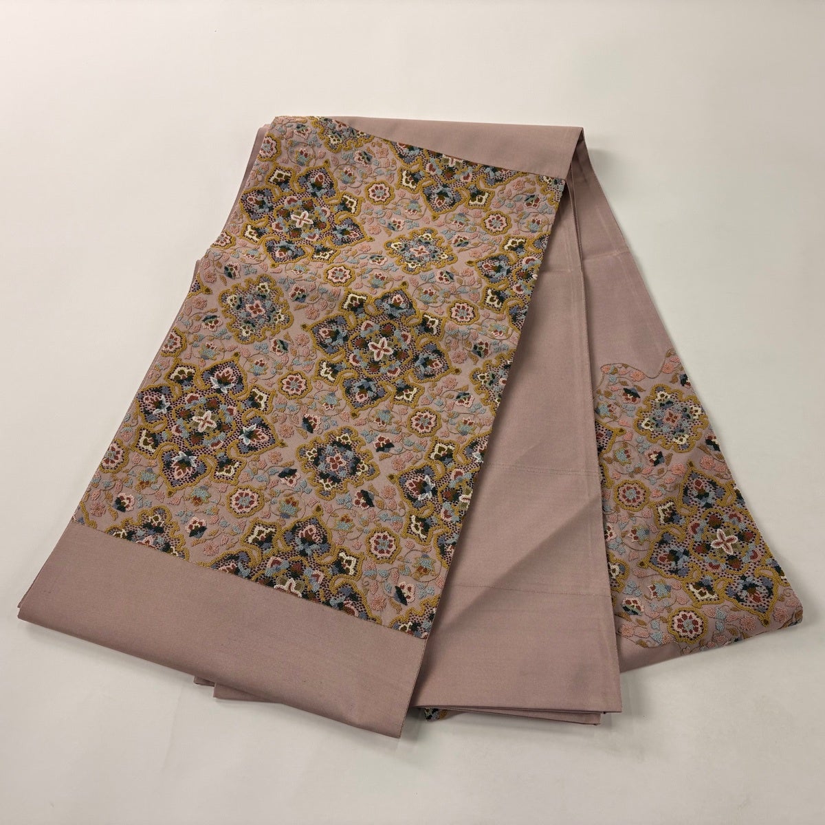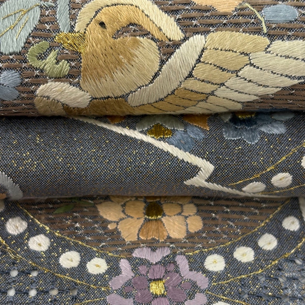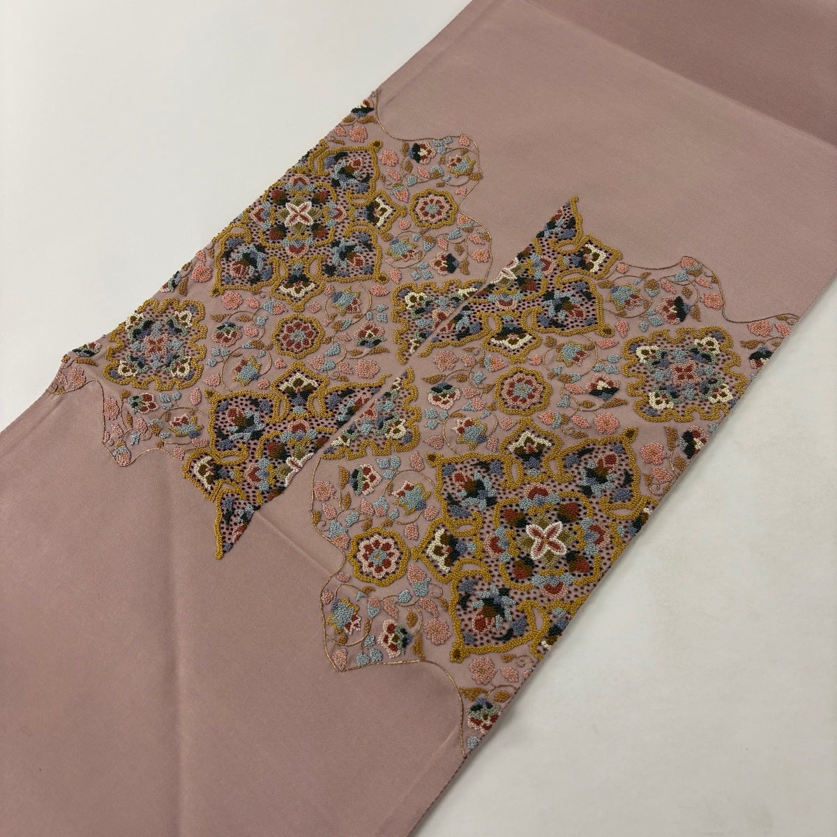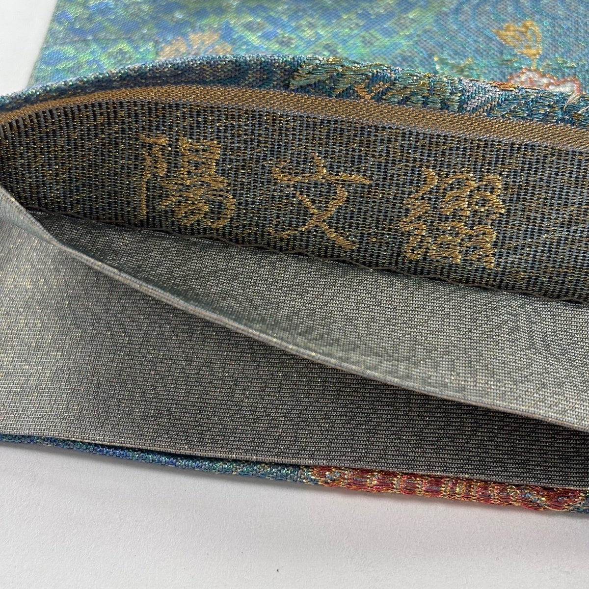 袋帯 名品 華文 草花 刺繍 螺鈿 灰紫 お太鼓柄 正絹