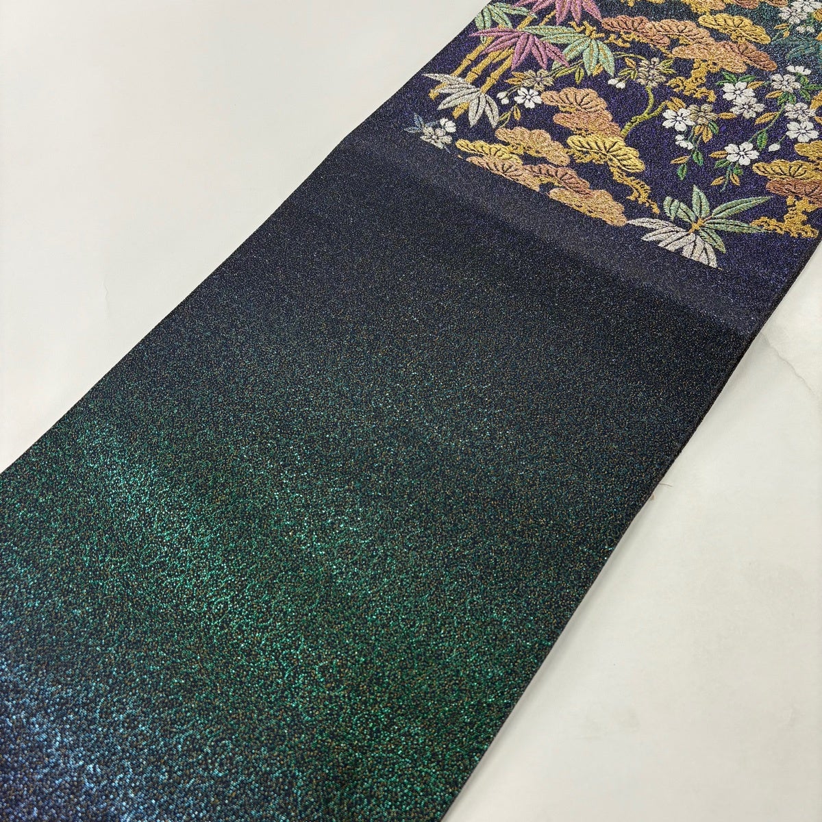 50%OFF 【美品】 袋帯 秀品 草花 ぼかし 灰紫 全通 正絹 K50