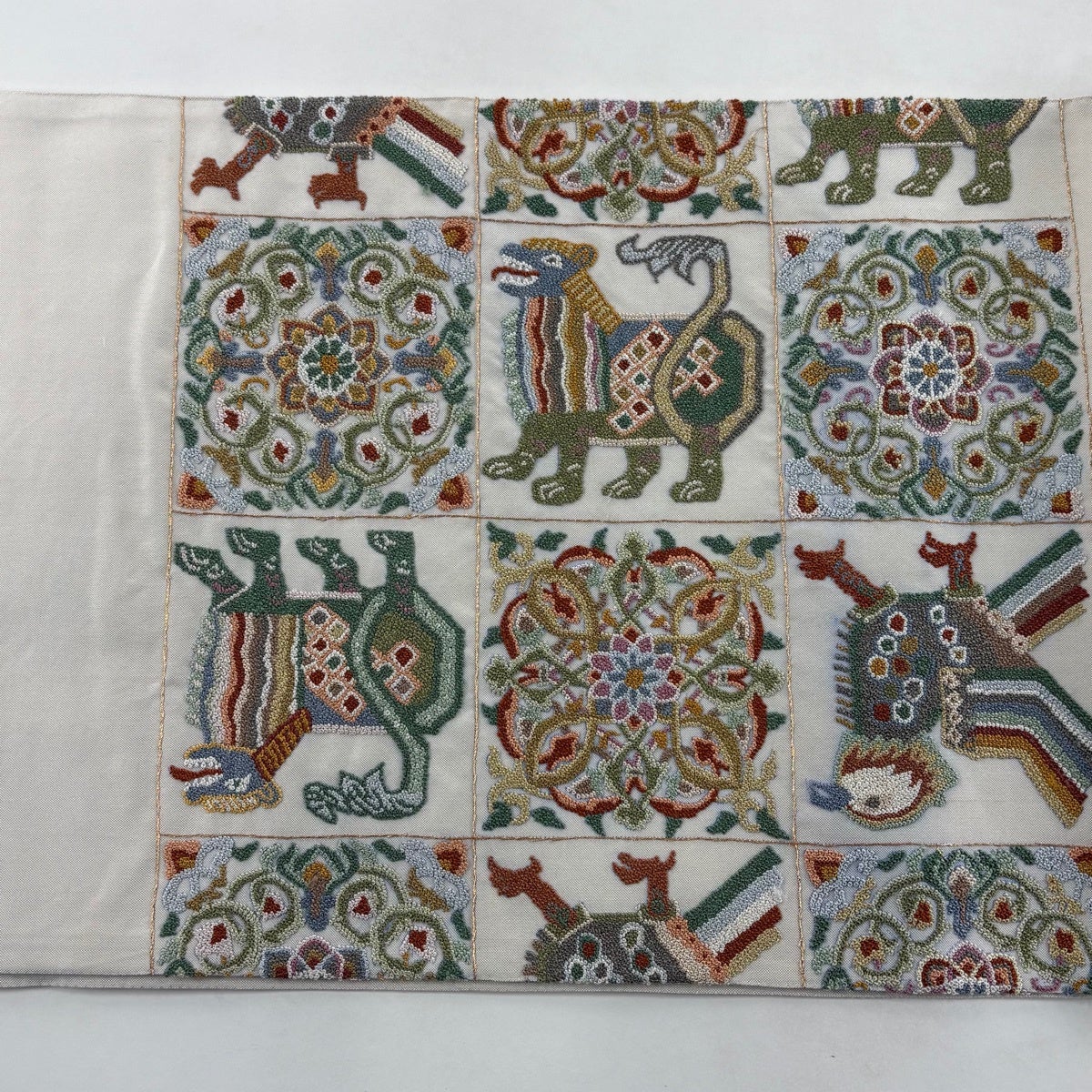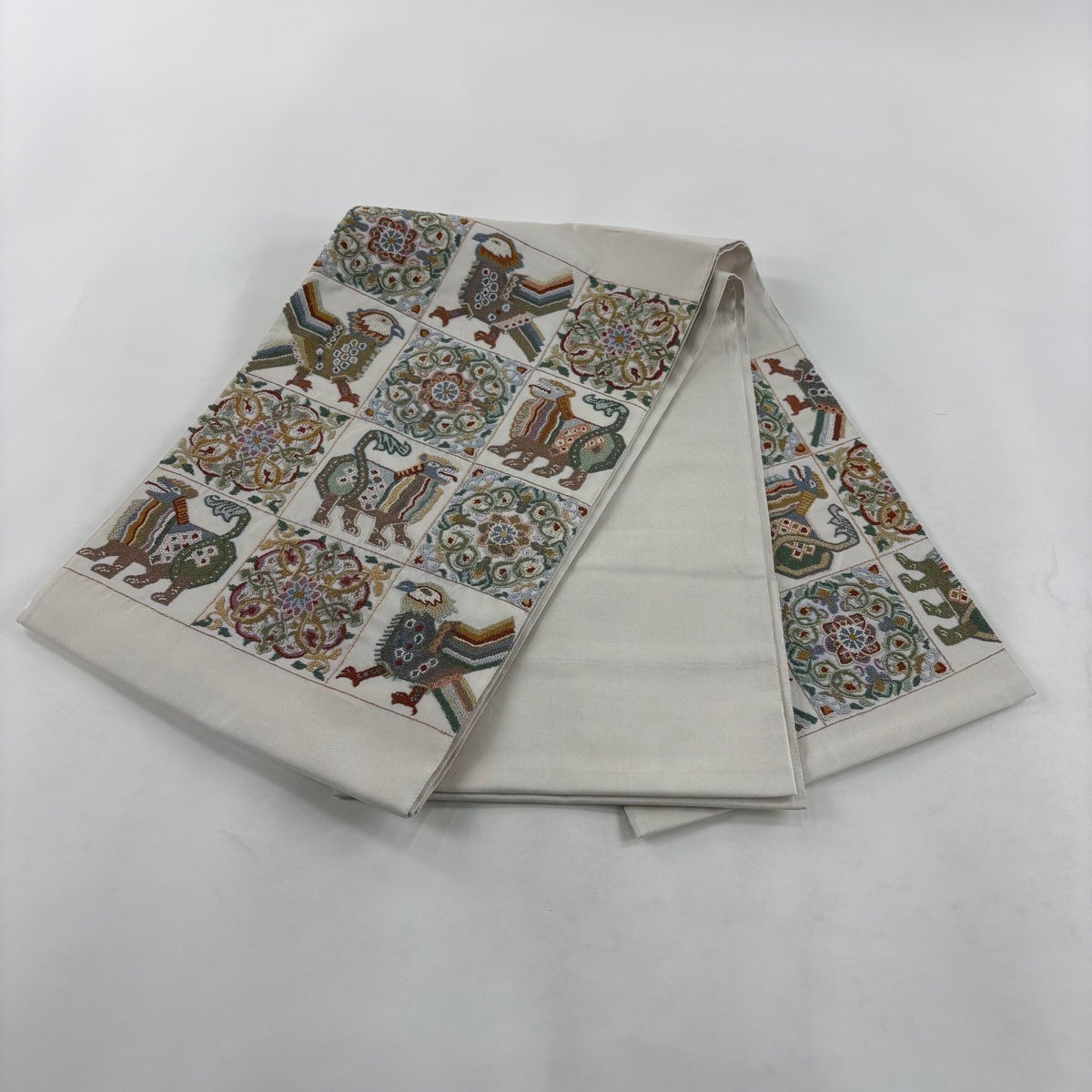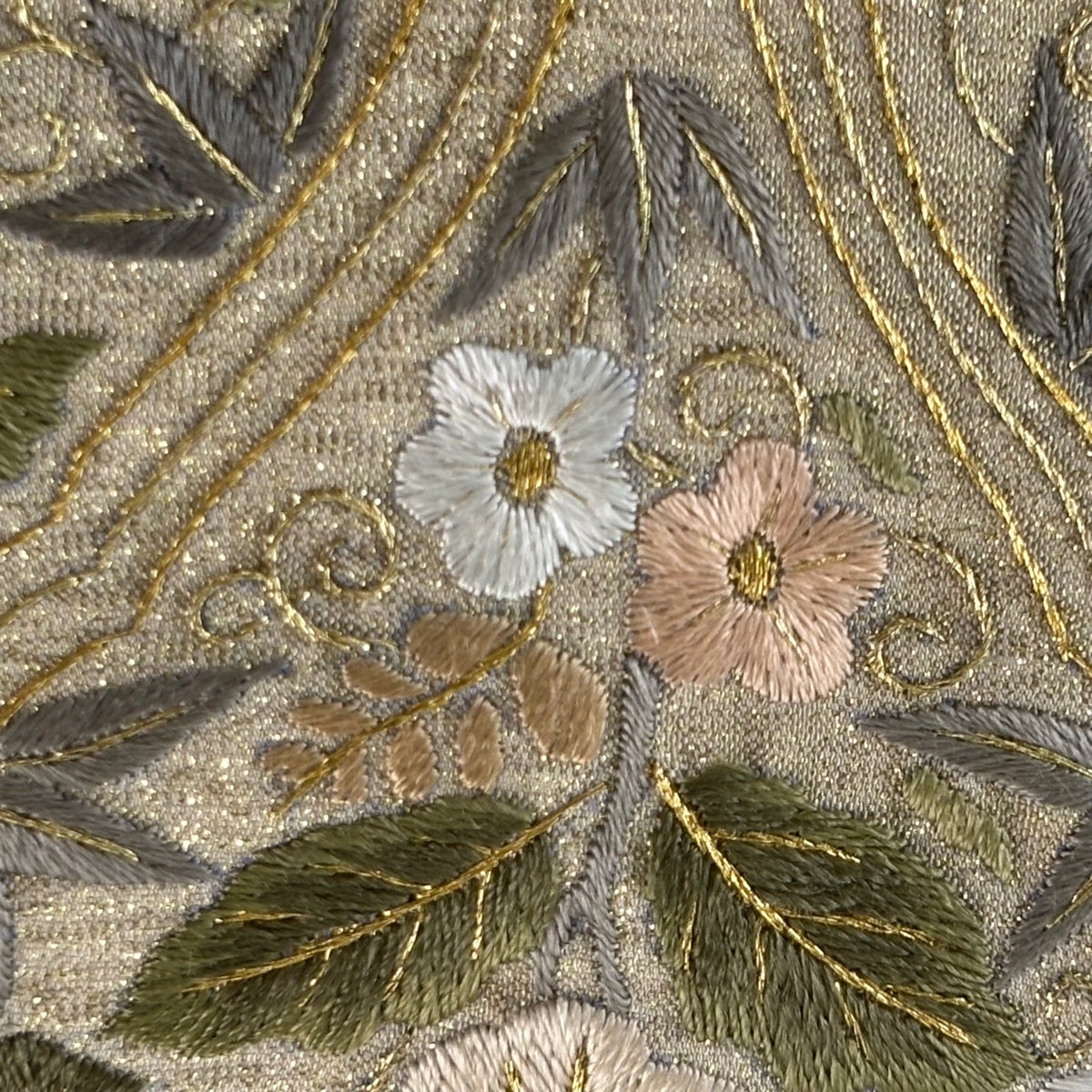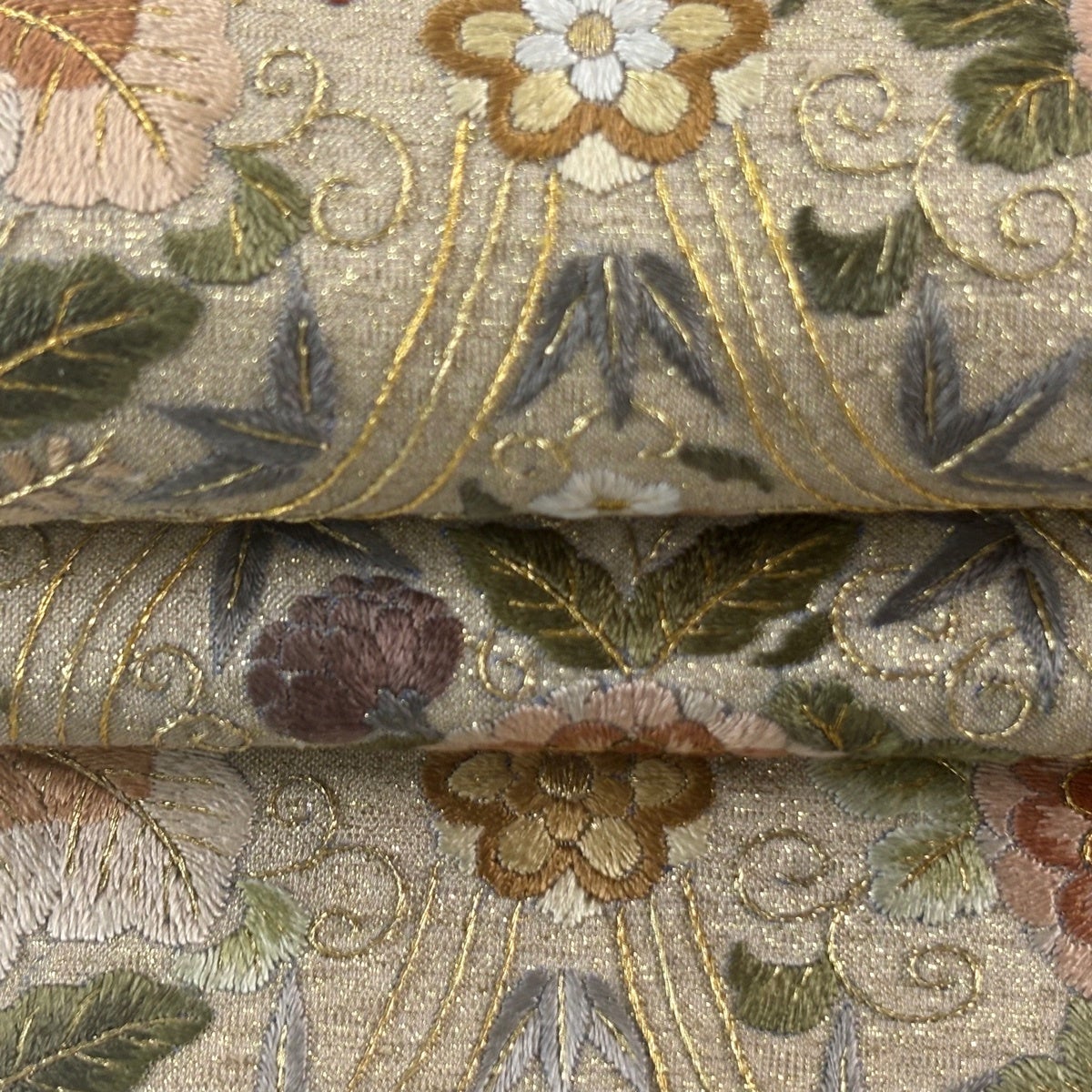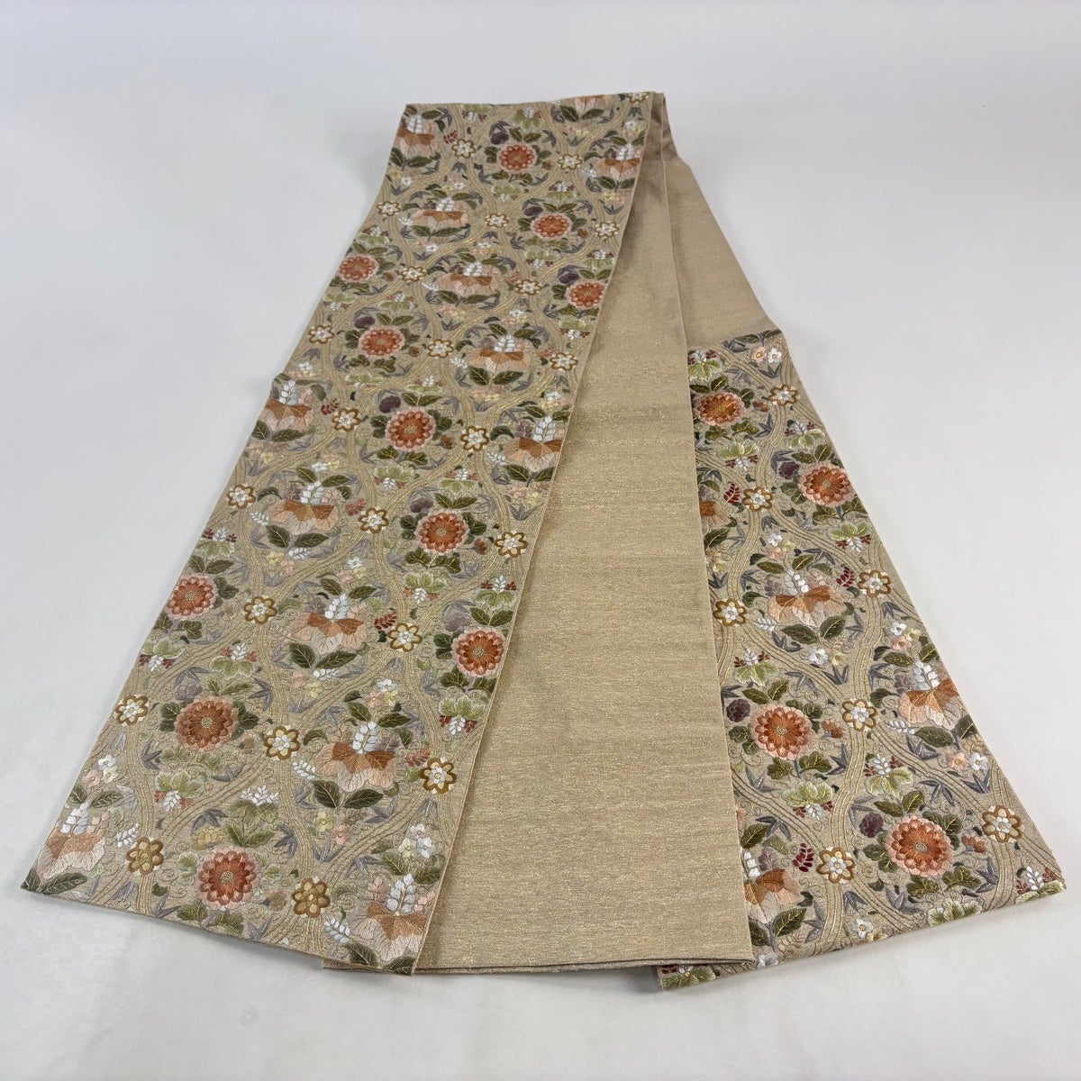 他の画像を見る 50%OFF 【美品】 袋帯 逸品 山口美術織物 落款あり 菱地豊穣文 稲穂 地紋 金彩 箔 ベージュ 六通 正絹 K50 当店通常価格 ¥ 41,800 ¥ 20,900 税込 在庫切れ
