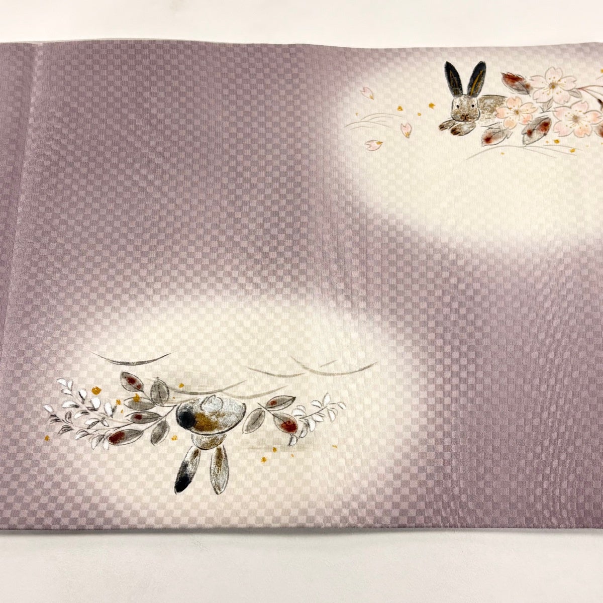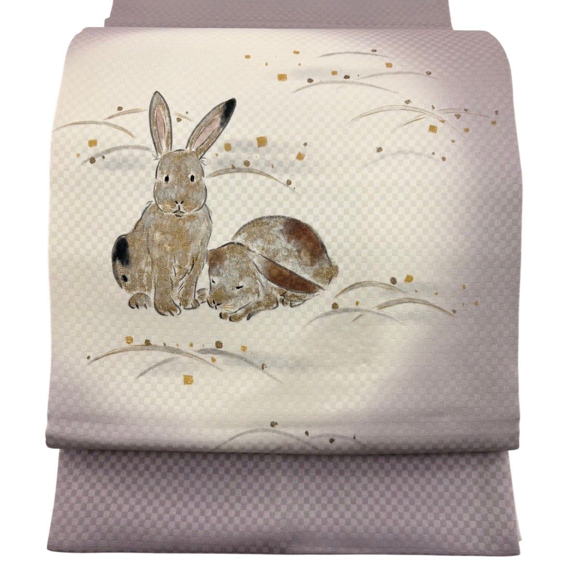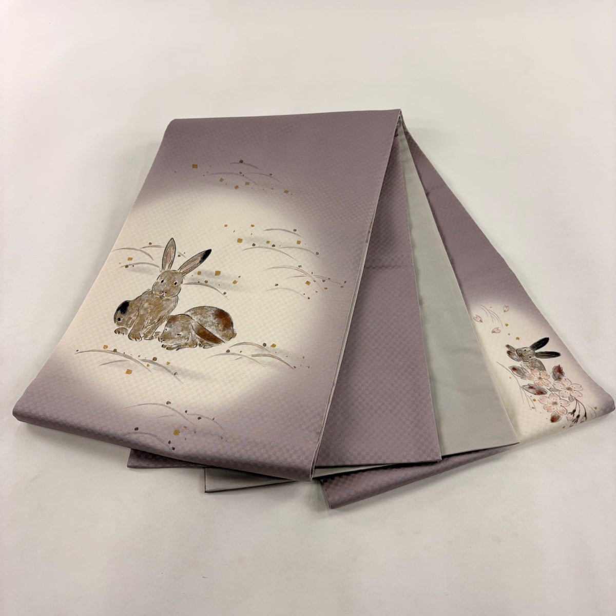 袋帯 秀品 幾何学模様 金彩 箔 灰紫 お太鼓柄 正絹