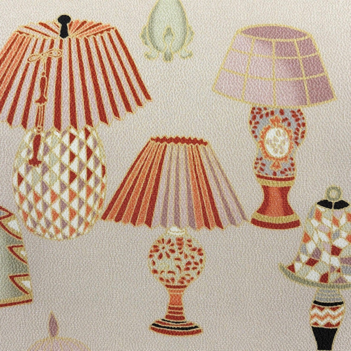 【美品】 名古屋帯 秀品 雪輪 草花 刺繍 薄オレンジ 正絹