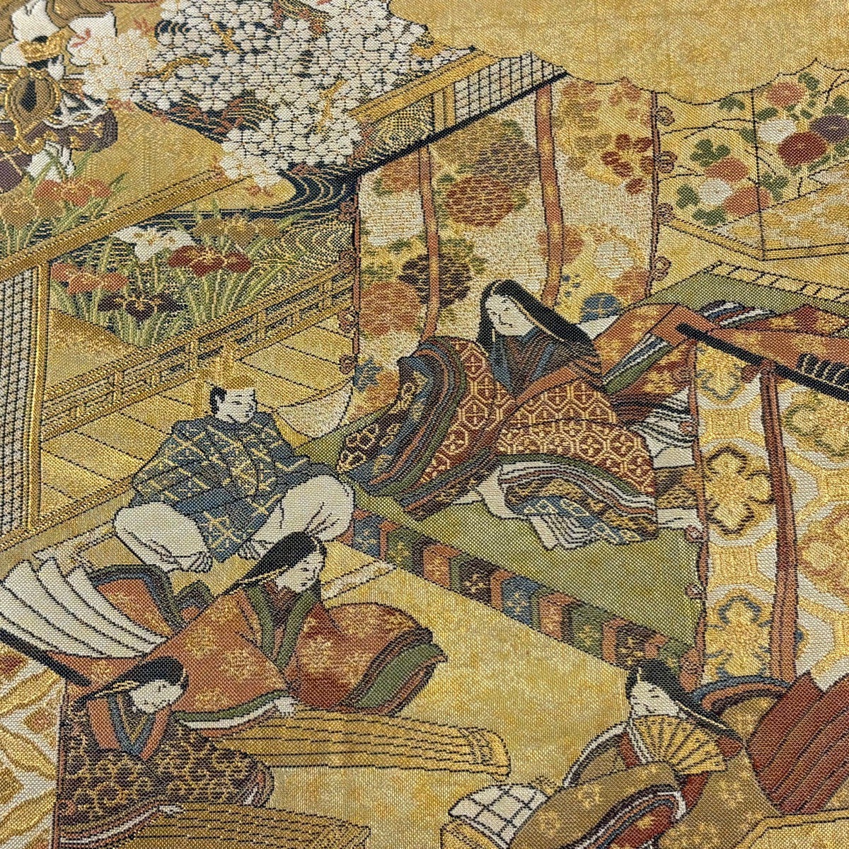 【美品】 袋帯 逸品 由水十久監修 長嶋成織物 瀞金錦 関西仕立て 二弦琴 童 本金箔 金銀糸 金色 お太鼓柄 正絹
