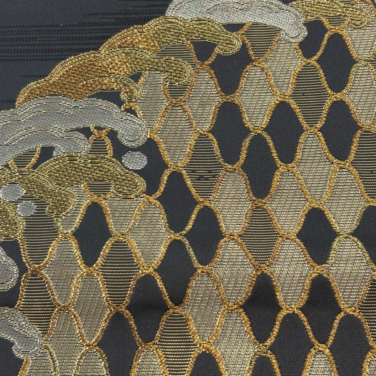 【美品】 袋帯 逸品 関西仕立て 菊 金銀糸 箔 黒 お太鼓柄 正絹