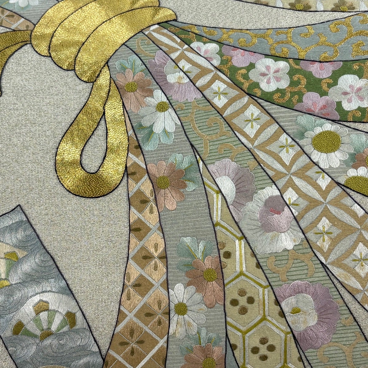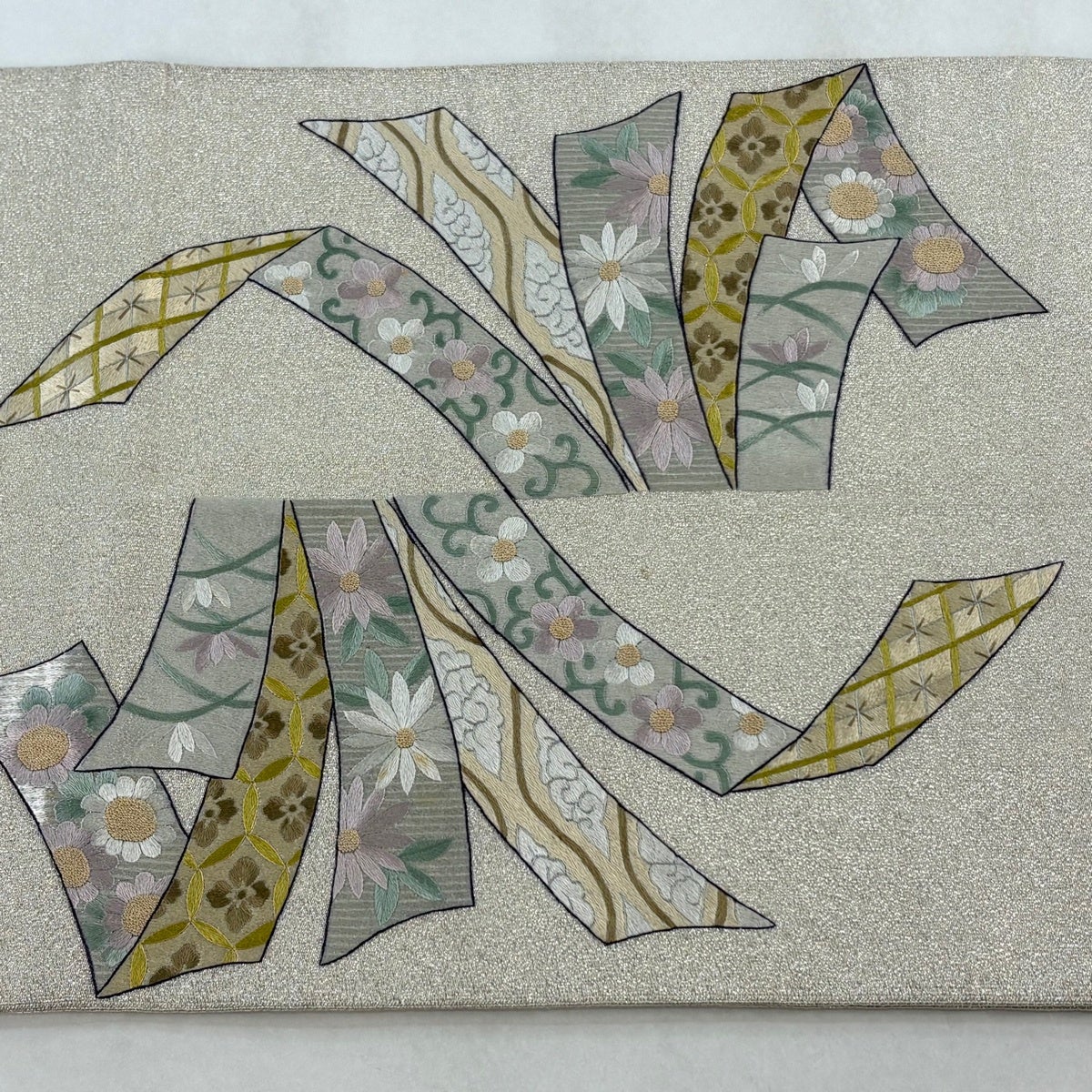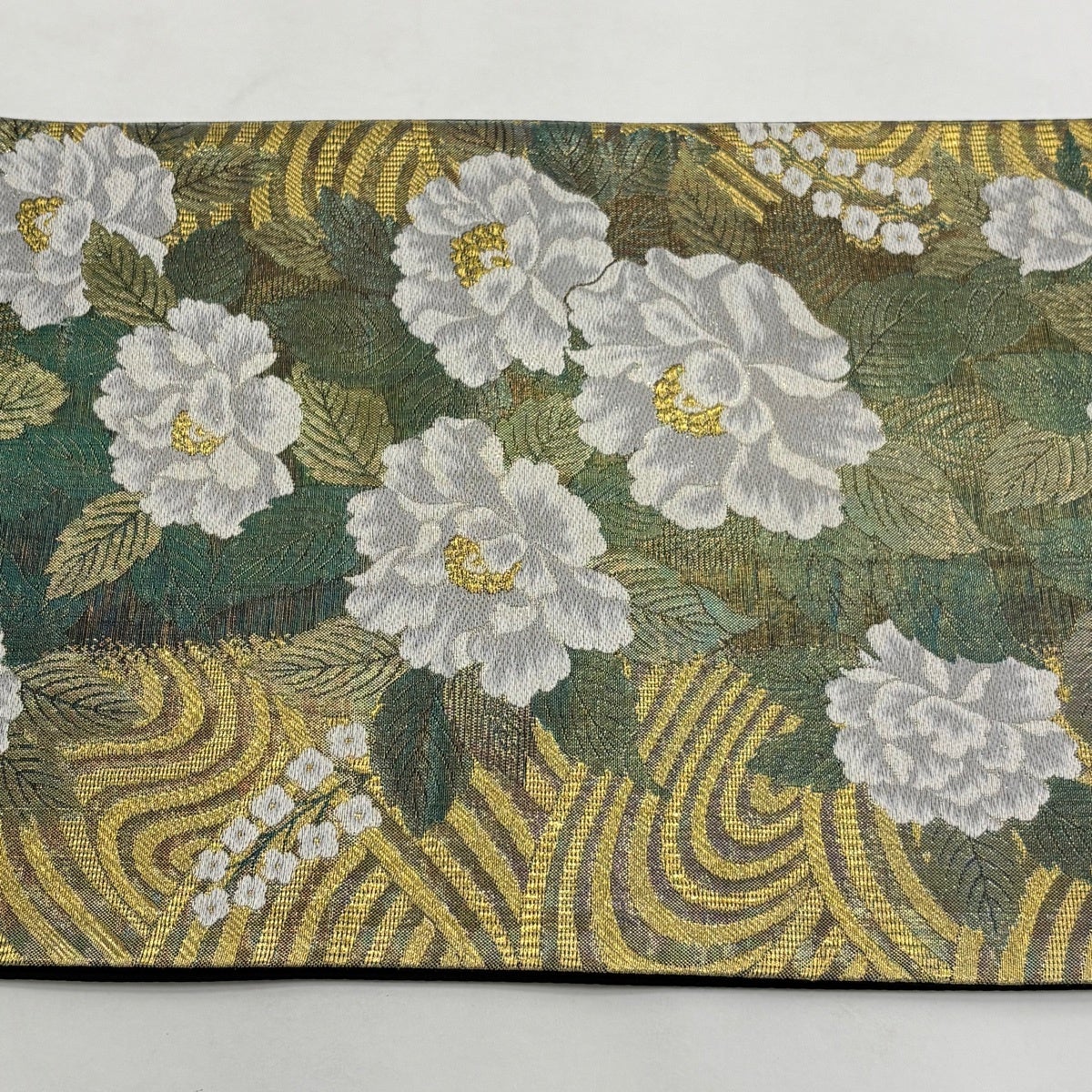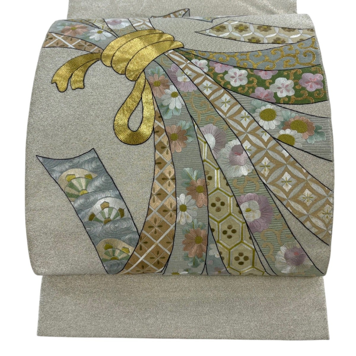 袋帯 秀品 華文 流水 金糸 刺繍 薄緑 六通 正絹
