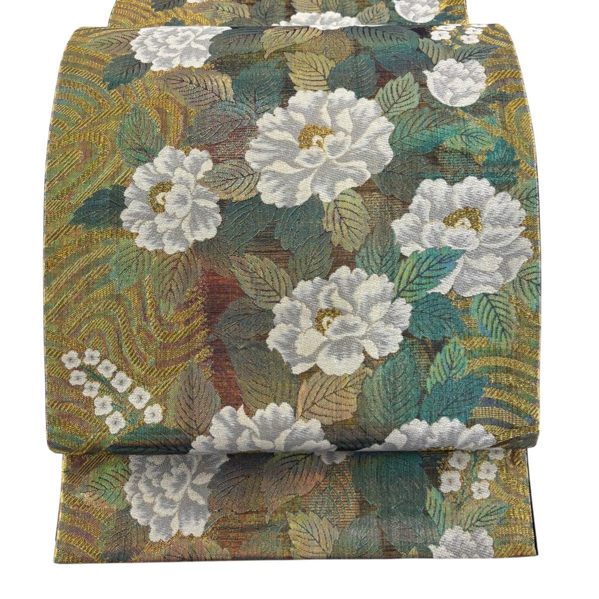袋帯 逸品 夏帯 蜀江華文 花唐草 金糸 灰緑 お太鼓柄 正絹