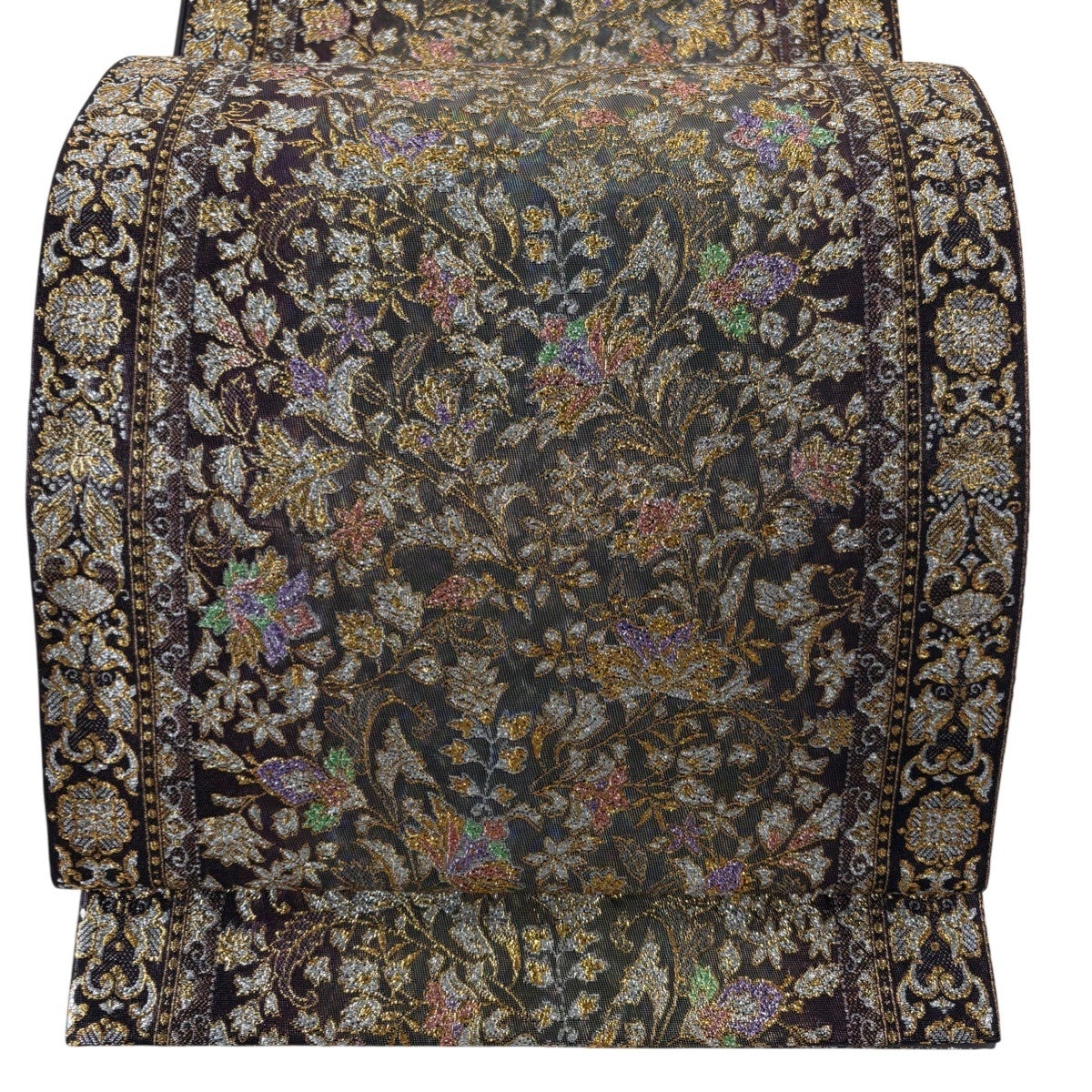 【美品】 袋帯 名品 やまと 草花 金糸 箔 黒 六通 正絹