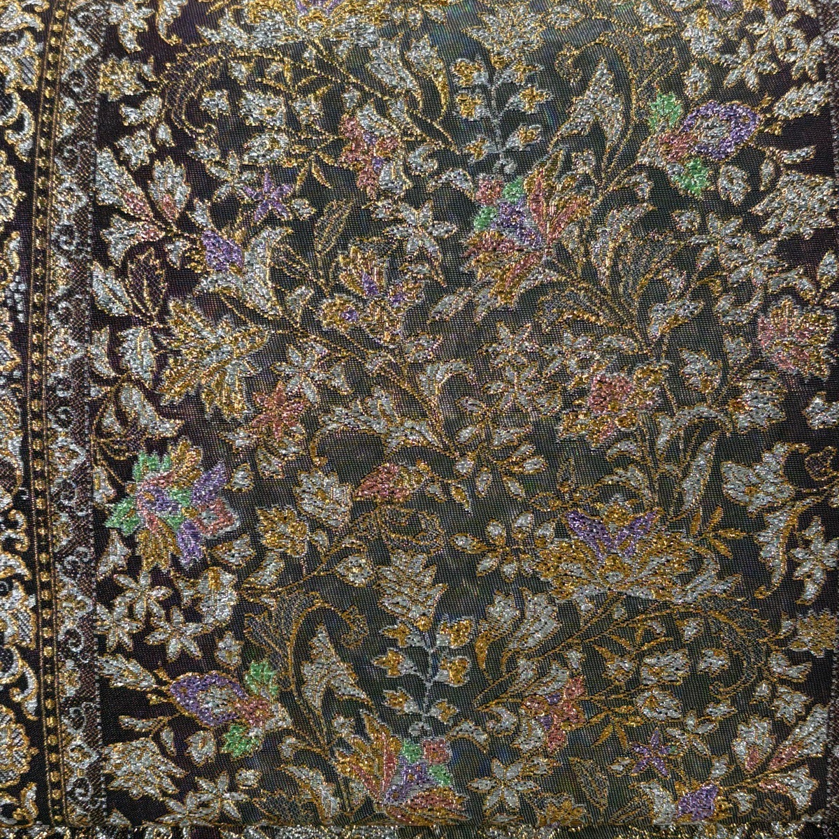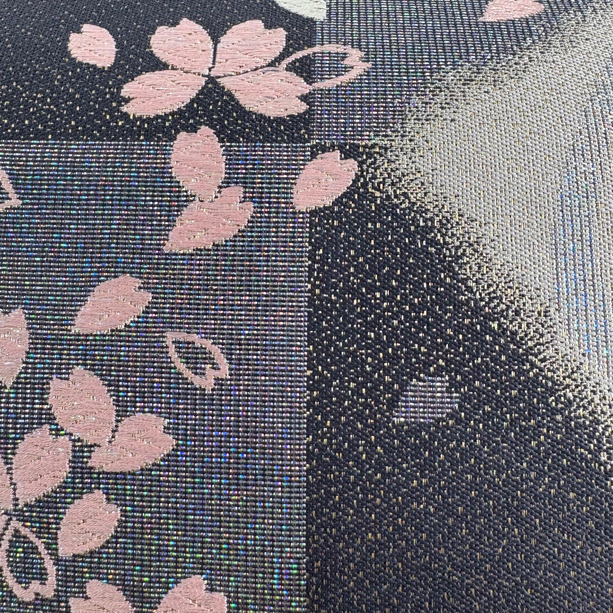 【美品】 袋帯 秀品 花 菱 箔 螺鈿箔 黒 六通 正絹