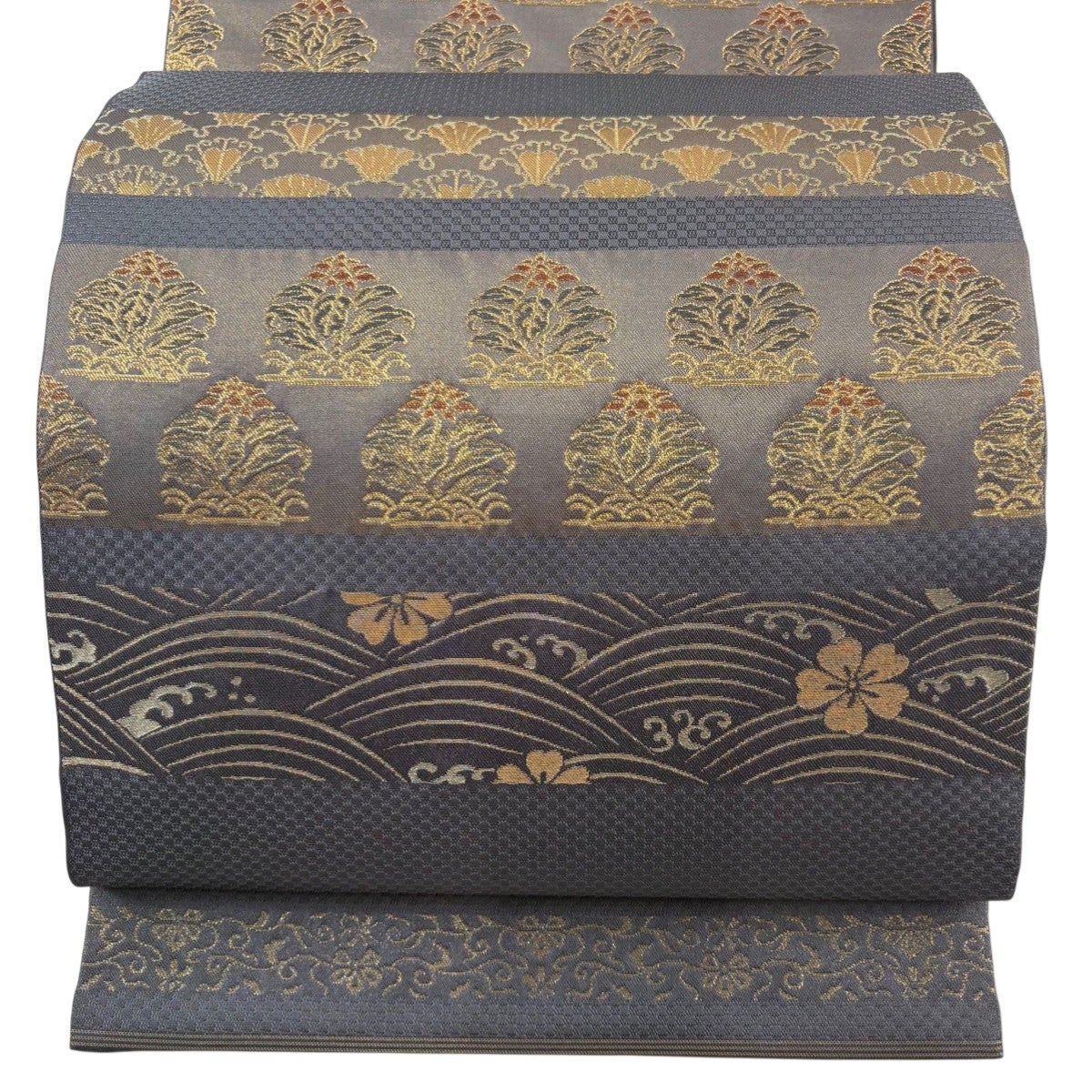 袋帯 名品 華文 青海波 金銀糸 輪奈織 金色 六通 正絹