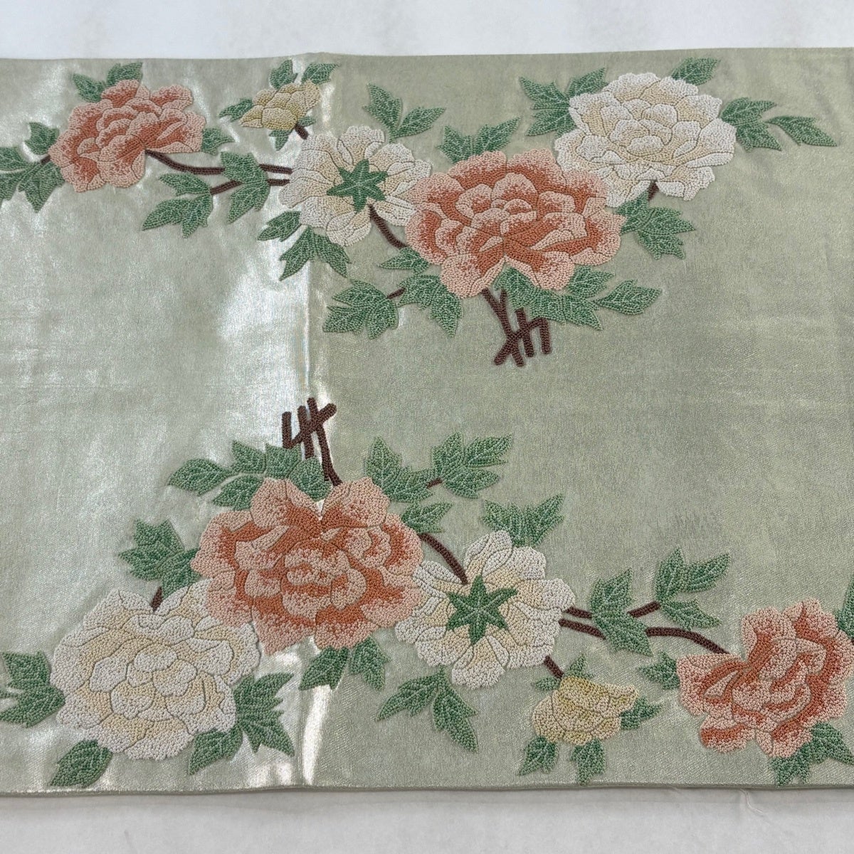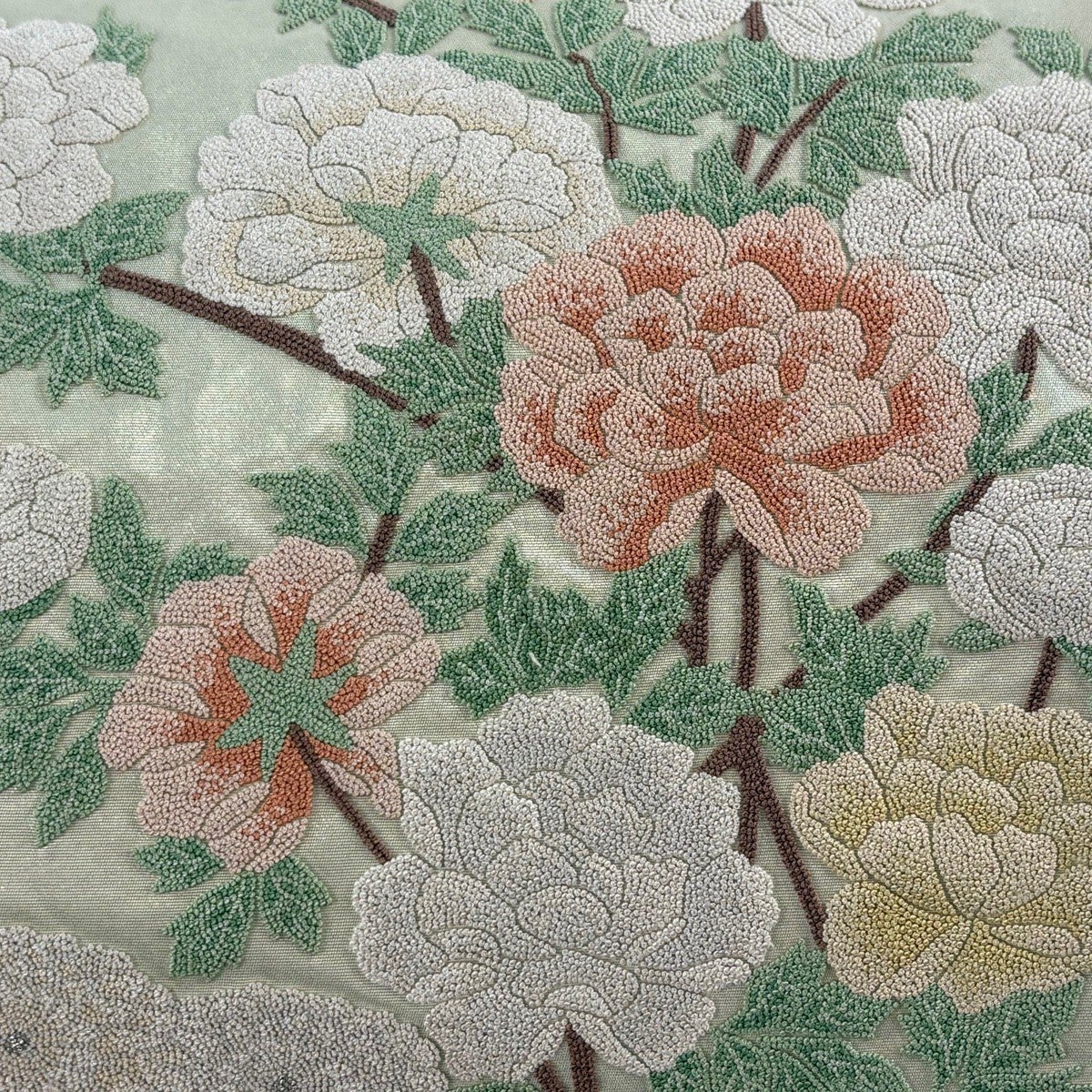 【美品】 袋帯 秀品 京都西陣 関西仕立て 牡丹 金銀糸 唐織 クリーム 六通 正絹