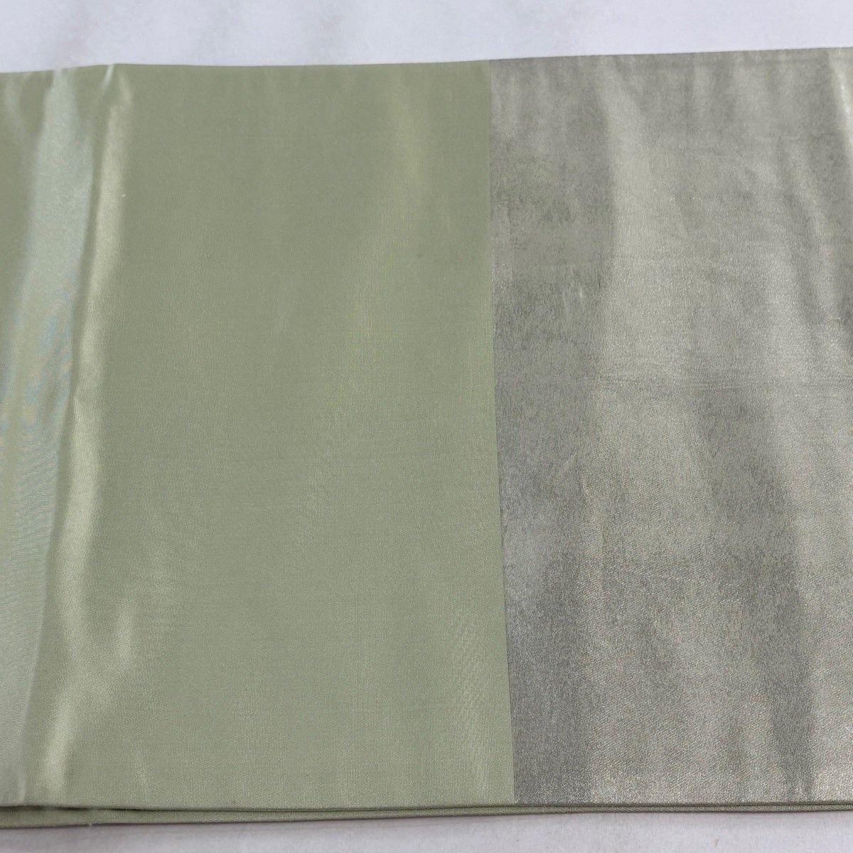【美品】 袋帯 秀品 月華幻耀 羽衣箔 幾何学模様 箔 緑 全通 正絹