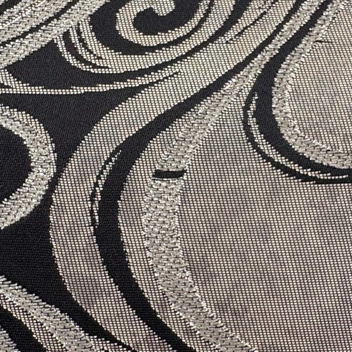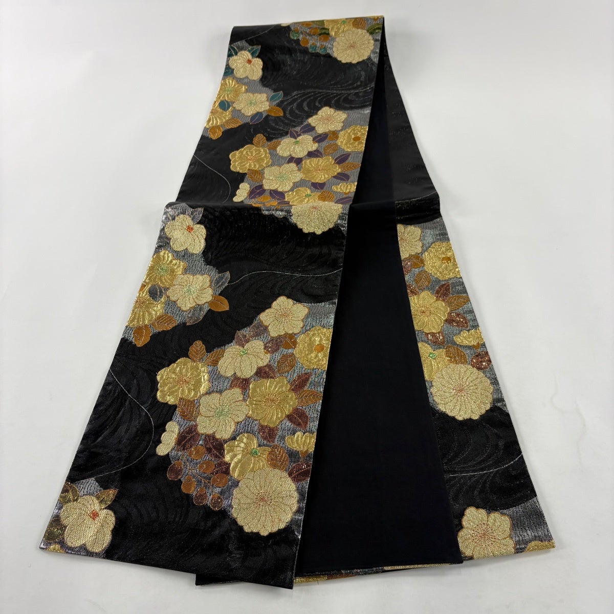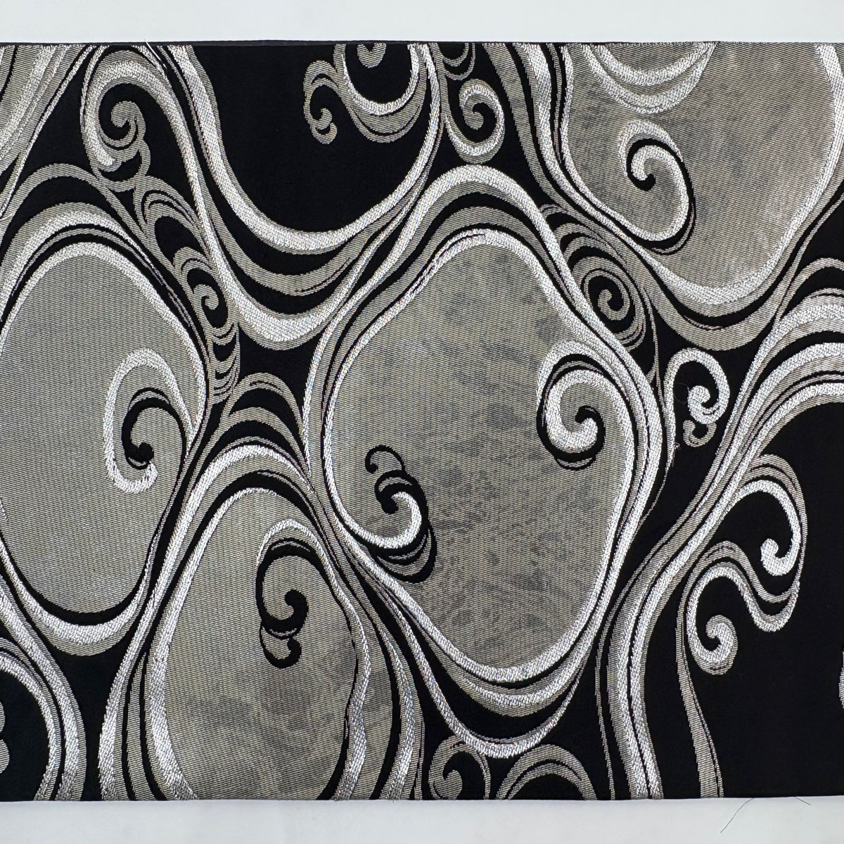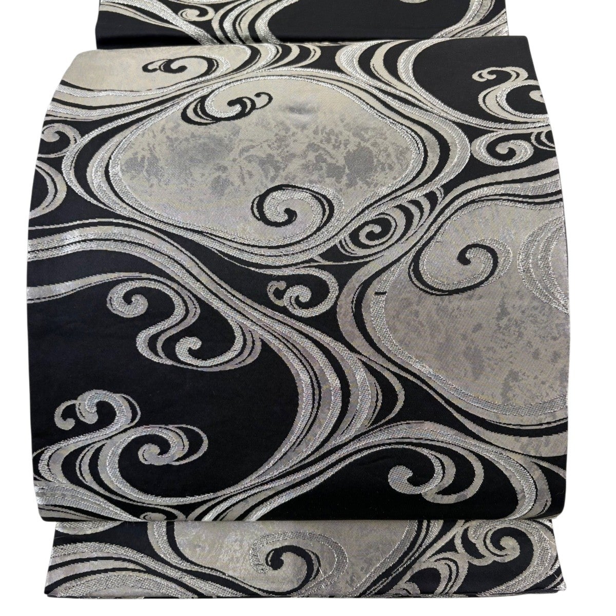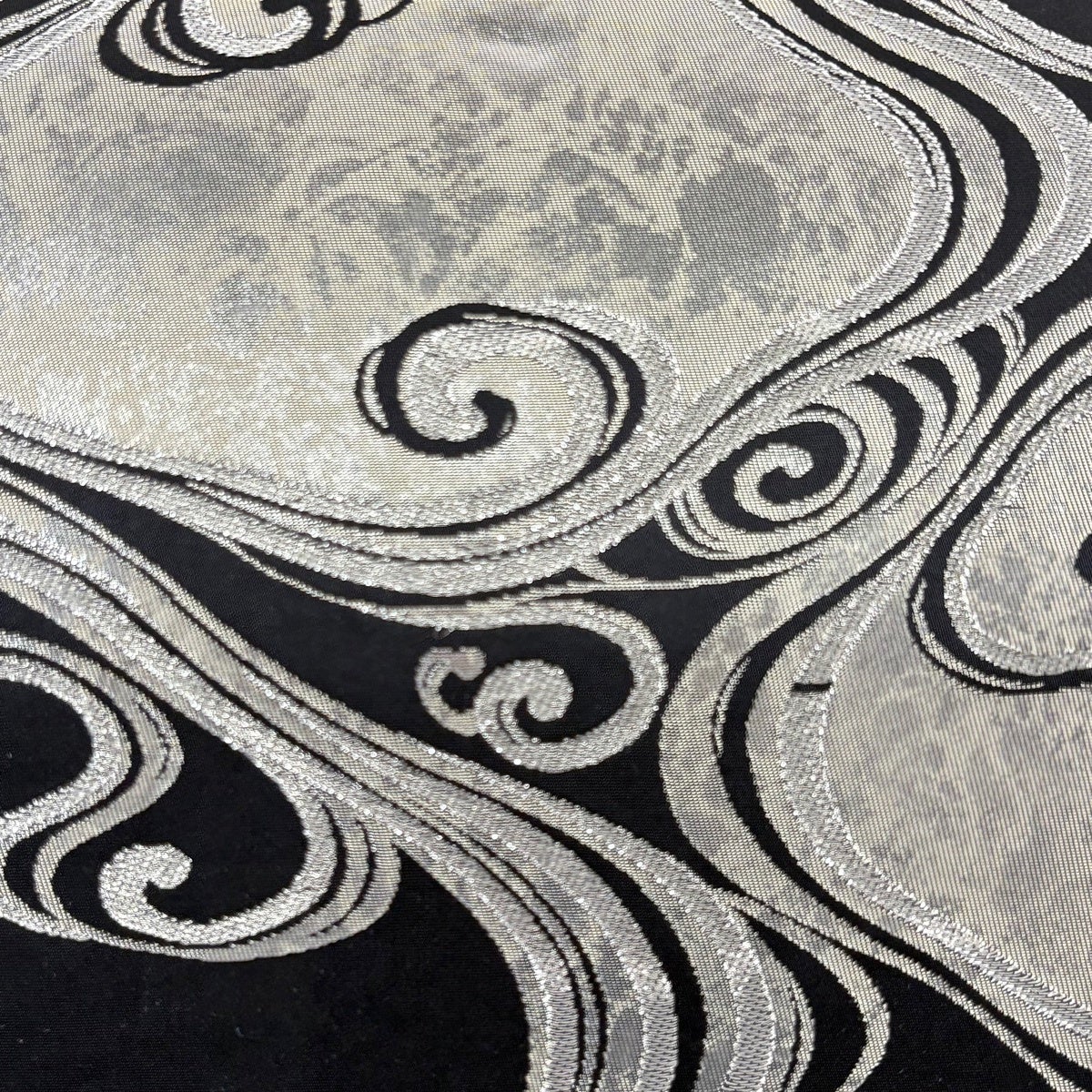 袋帯 名品 草野一騎 落款あり 流水 銀糸 箔 黒 六通 正絹