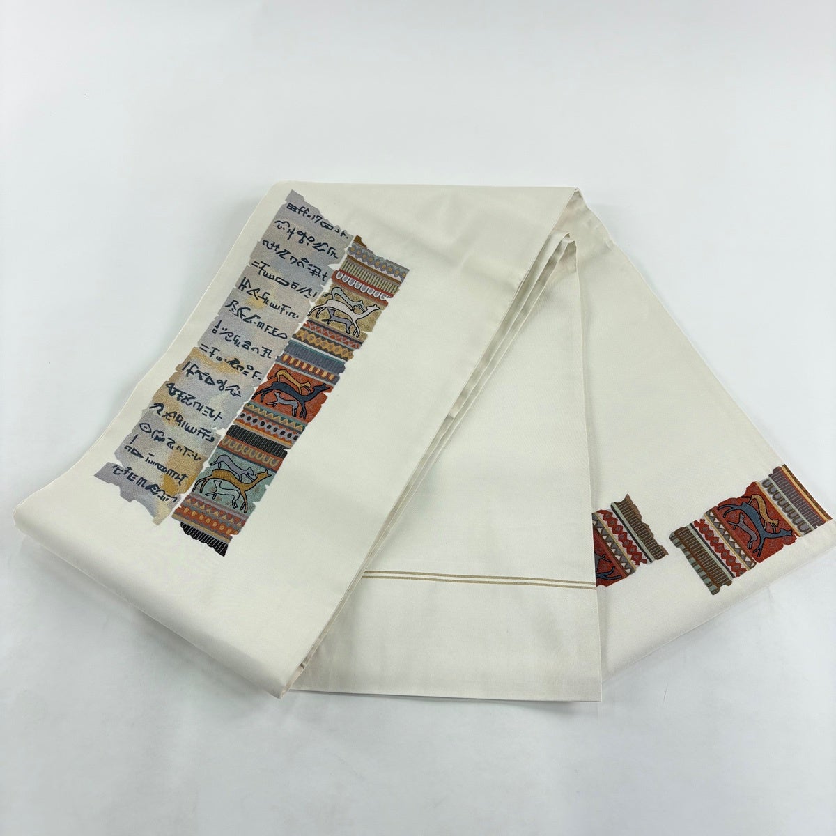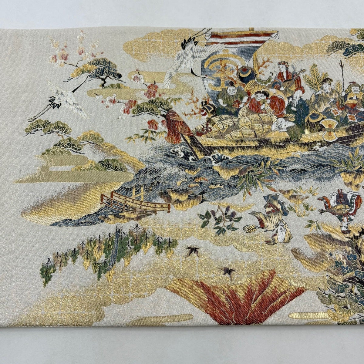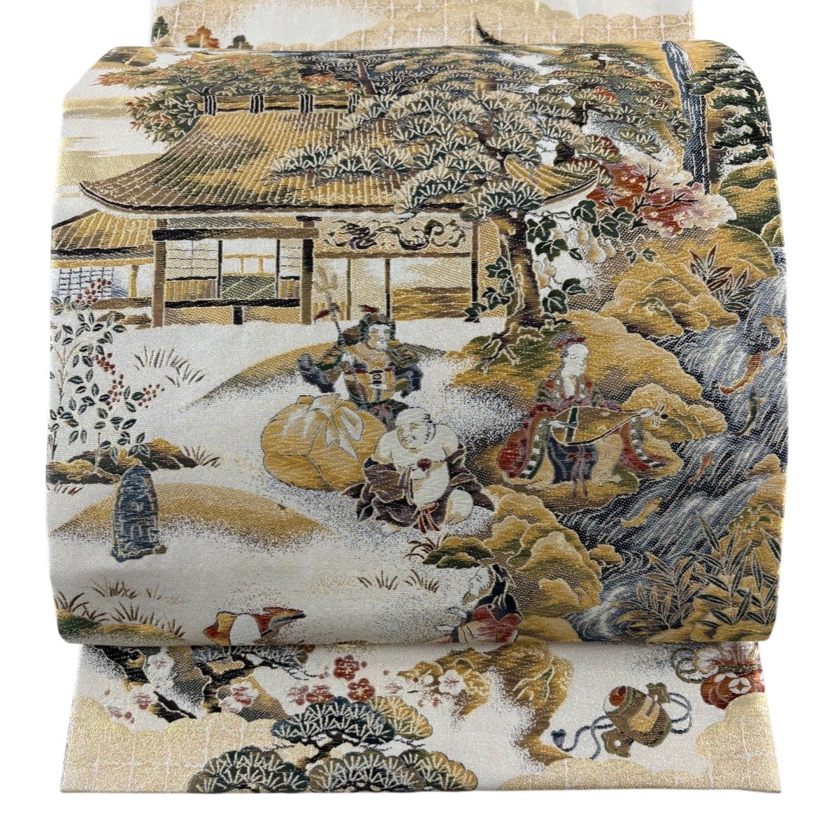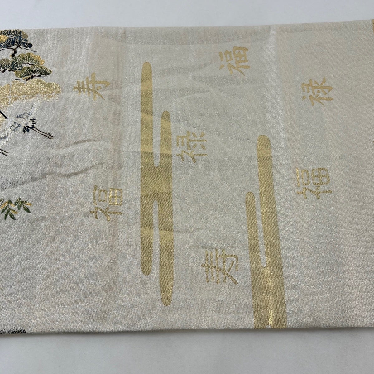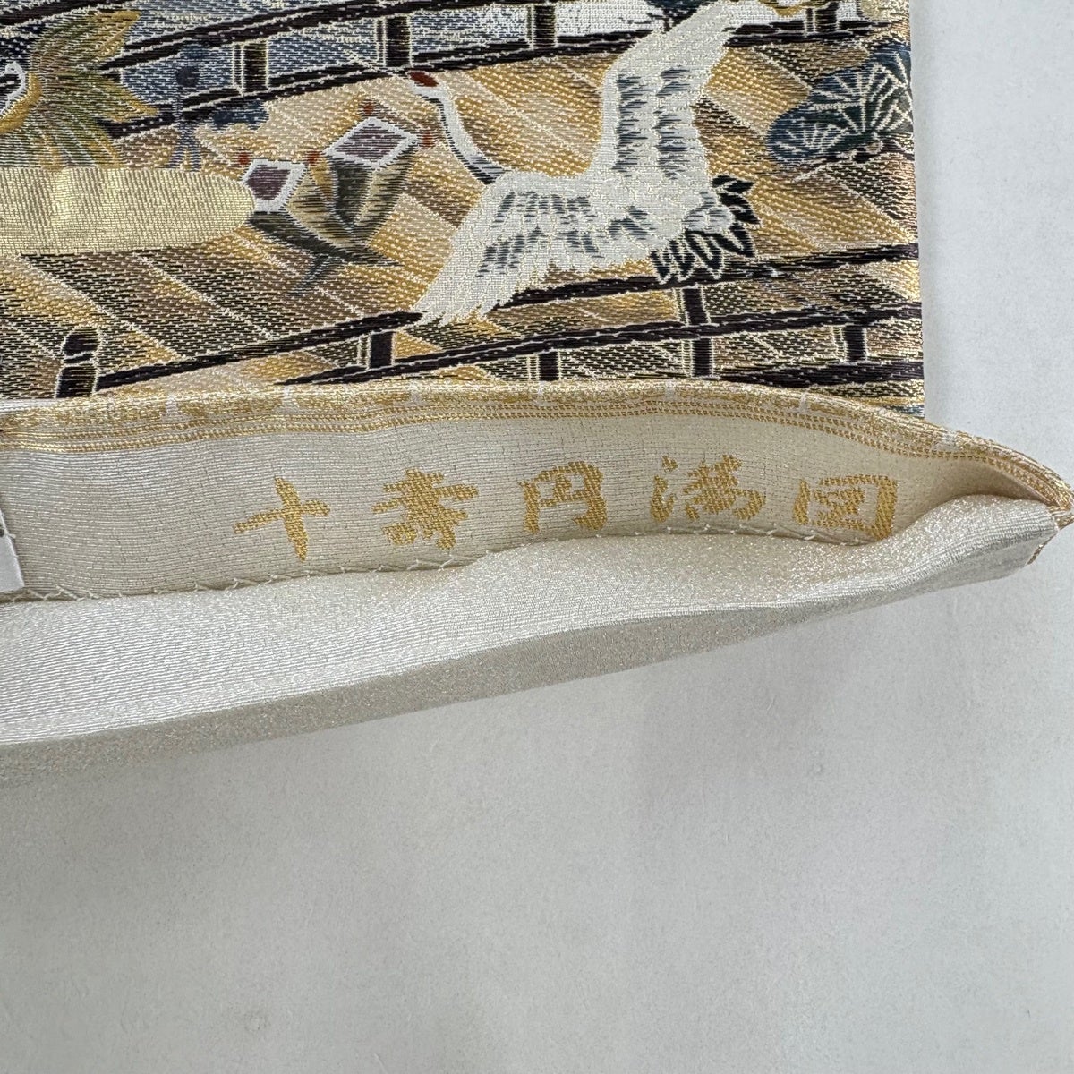 【美品】 袋帯 秀品 風水の綴帯 十壽円満図 唐織 金銀糸 灰白 お太鼓柄 正絹