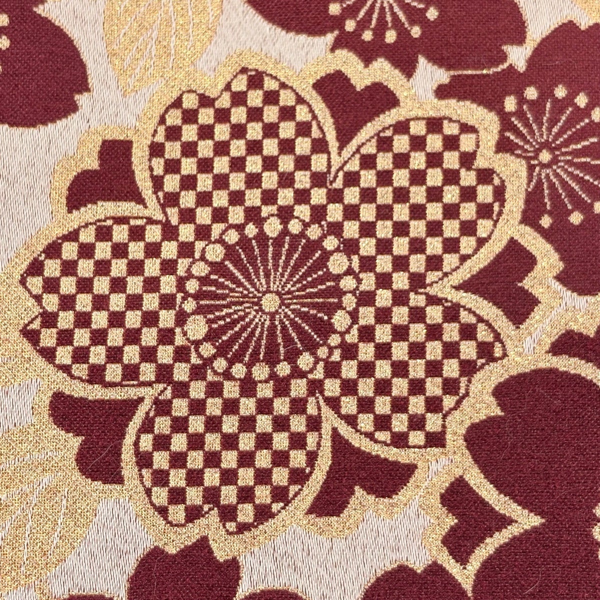 【美品】 名古屋帯 名品 草花 花菱 唐織 クリーム 正絹