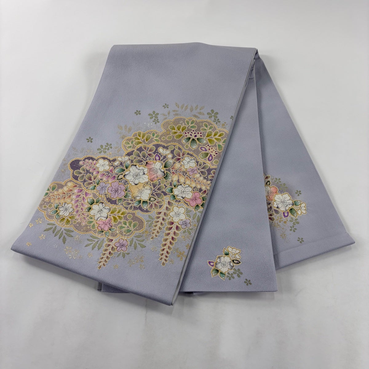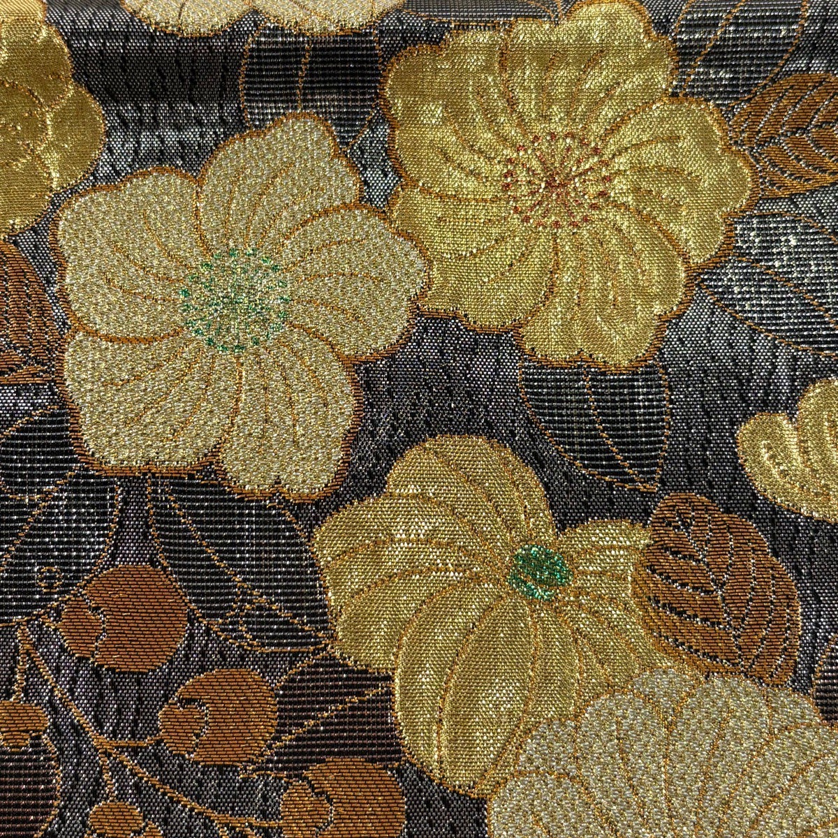 袋帯 秀品 やまと 草花 松皮菱 箔 金銀糸 灰色 六通 正絹
