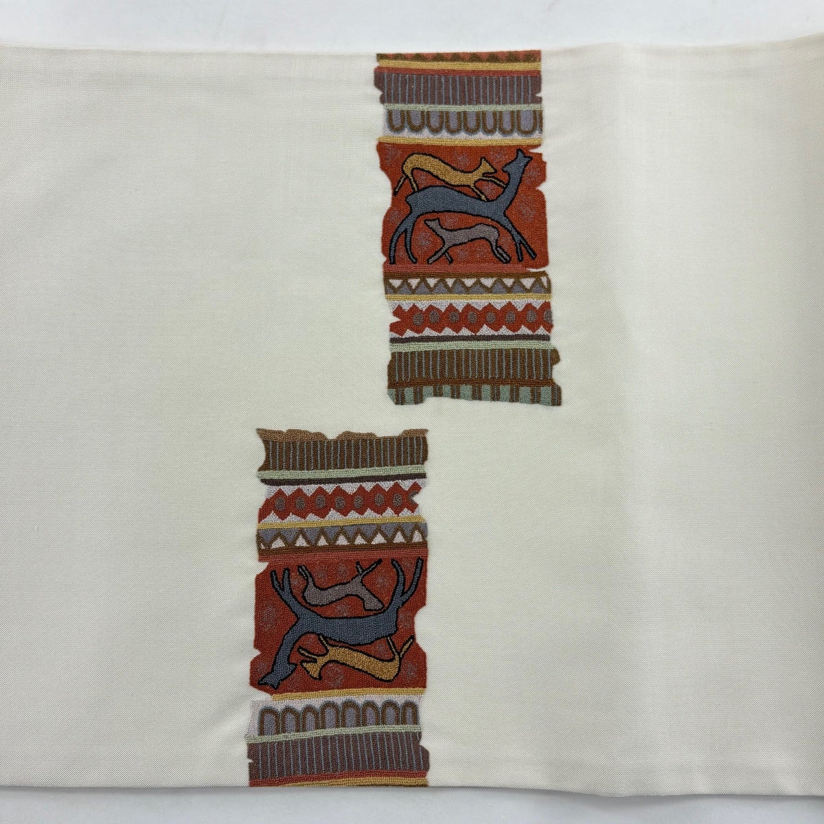 【美品】 袋帯 秀品 流水 幾何学 クリーム 全通 正絹