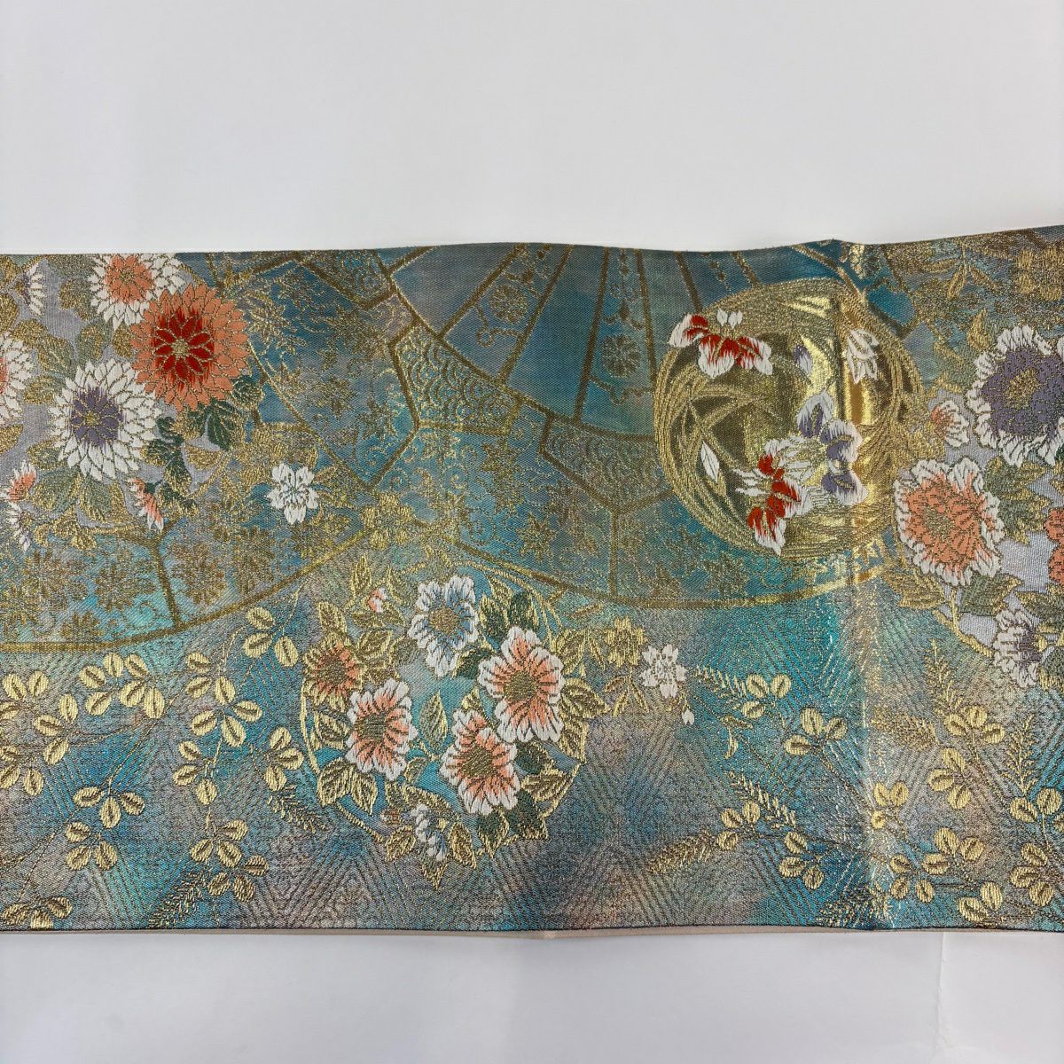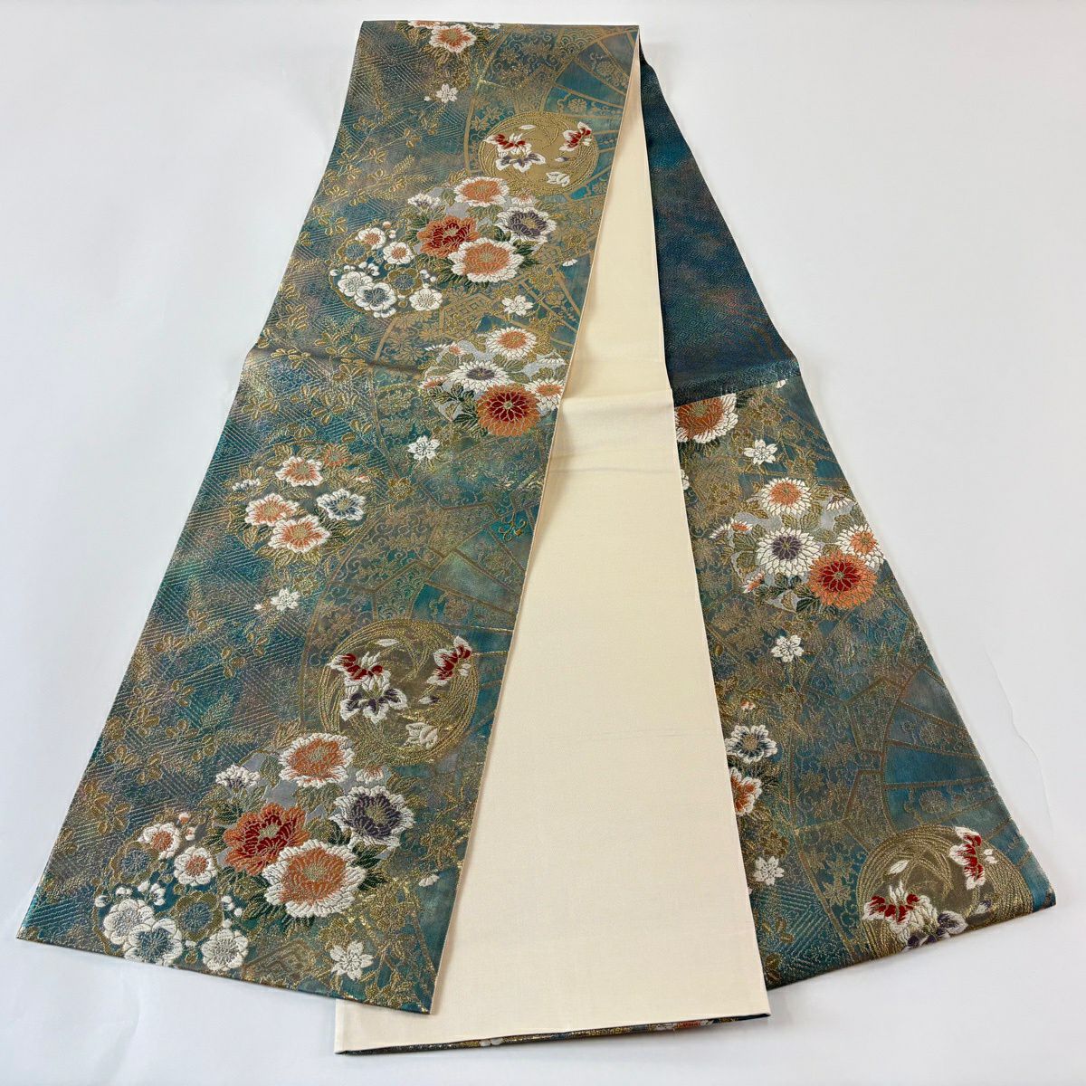 袋帯 秀品 やまと 桜 菊 金銀糸 箔 灰緑 六通 正絹