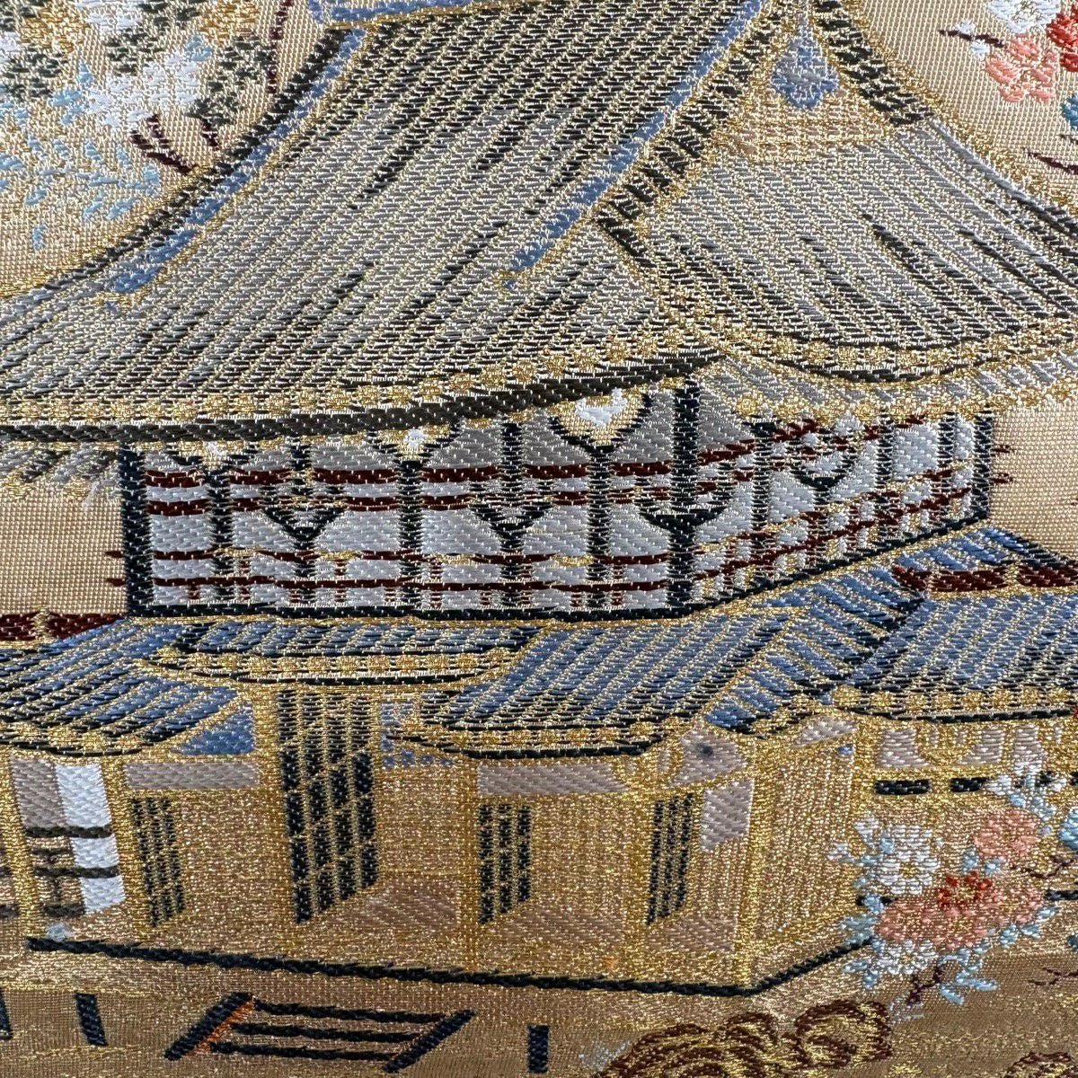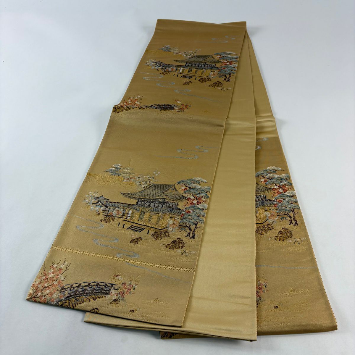 【美品】 袋帯 秀品 菊 橋 螺鈿 金銀彩 金色 お太鼓柄 正絹