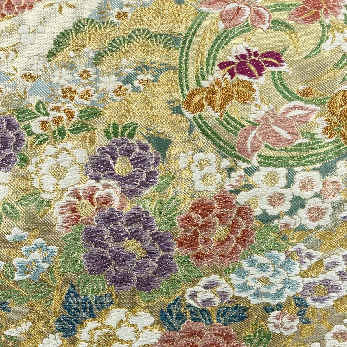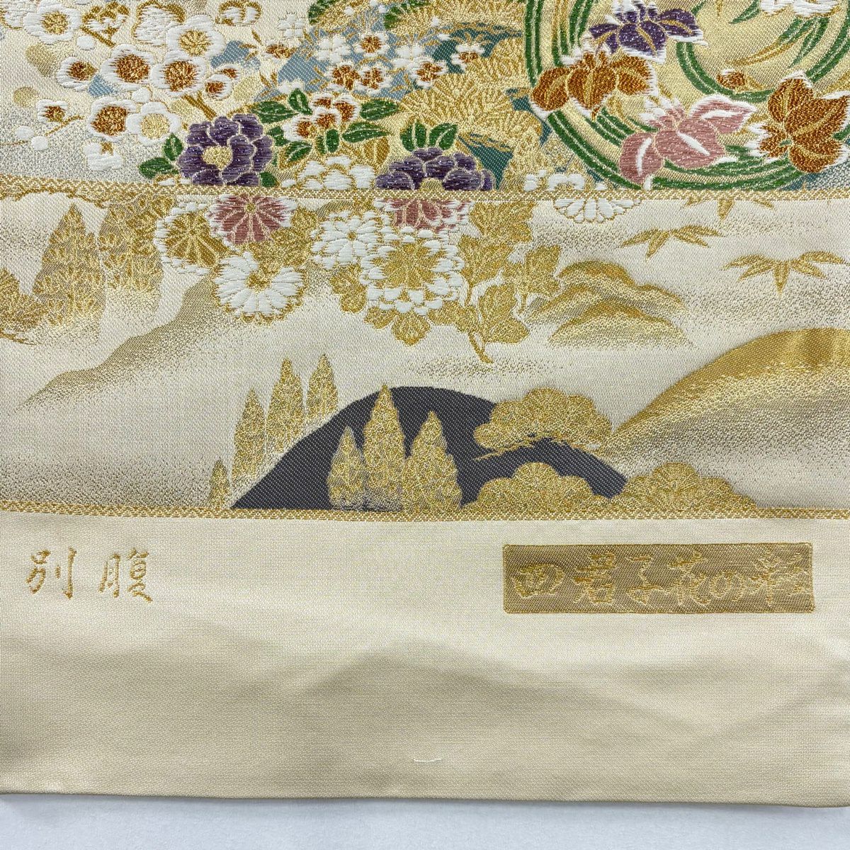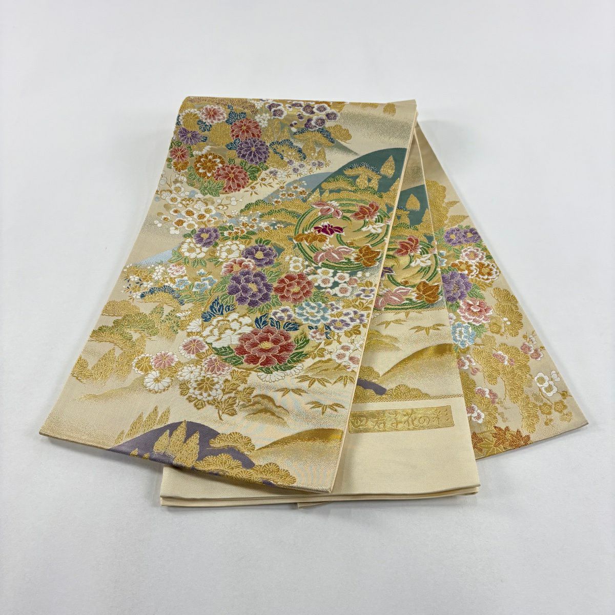 【美品】 袋帯 名品 四君子花の彩 別腹 花丸文 松竹梅 箔 金糸 金色 六通 正絹