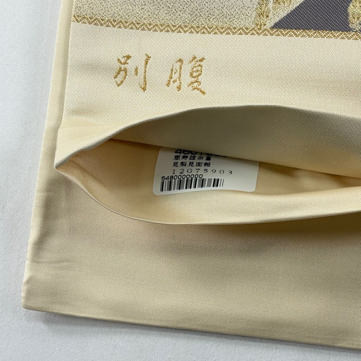 【美品】 袋帯 名品 斜縞 幾何学模様 金糸 ベージュ 全通 正絹