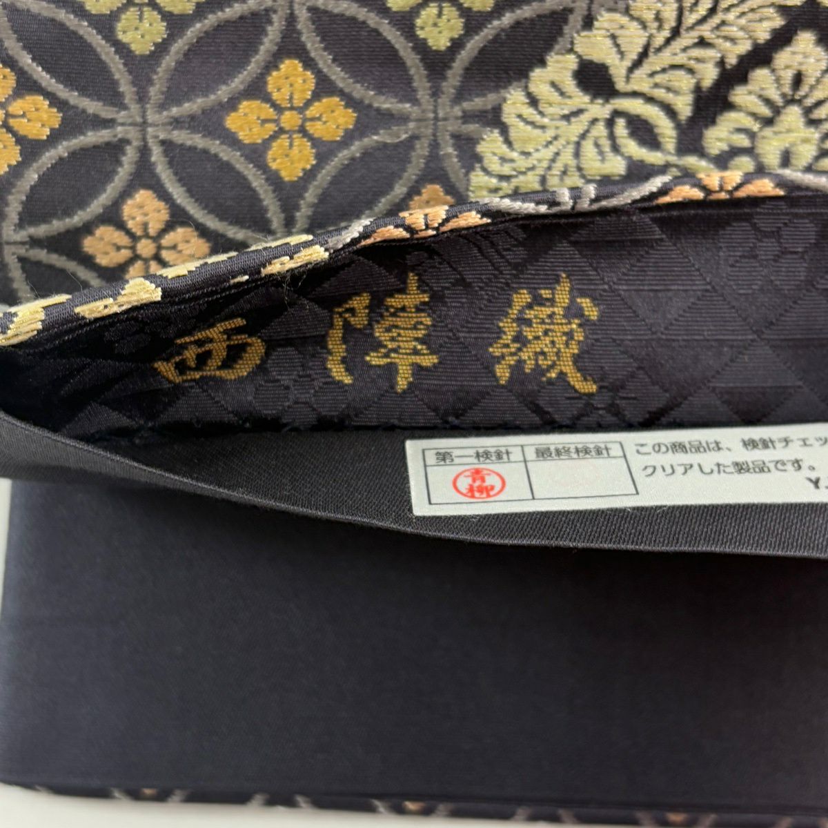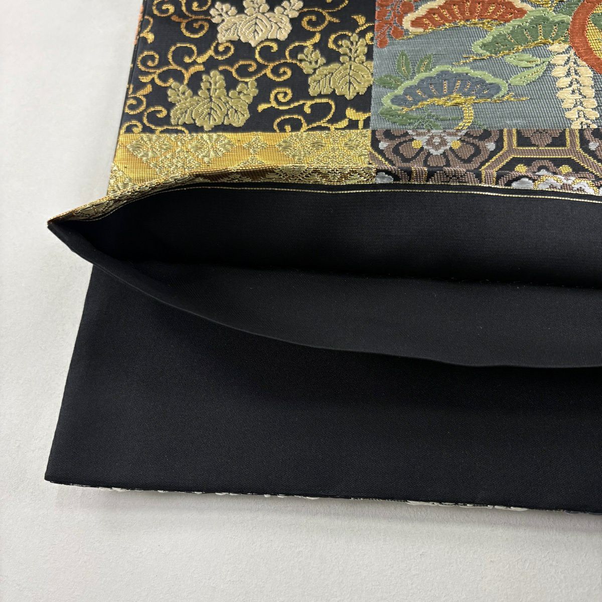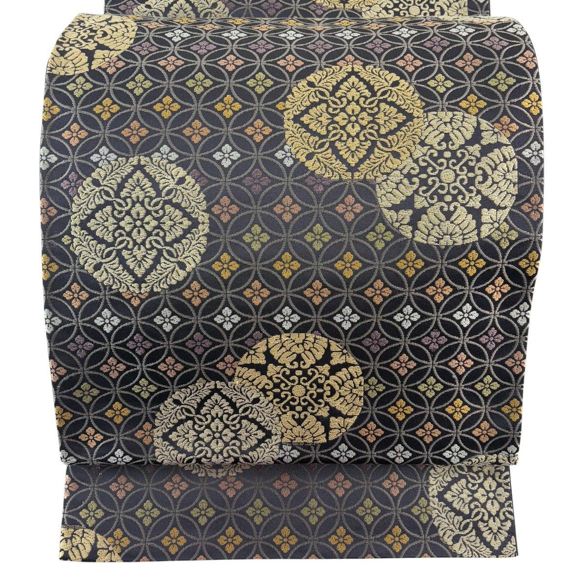 袋帯 名品 草花 蜀江文 金銀糸 箔 黒 六通 正絹