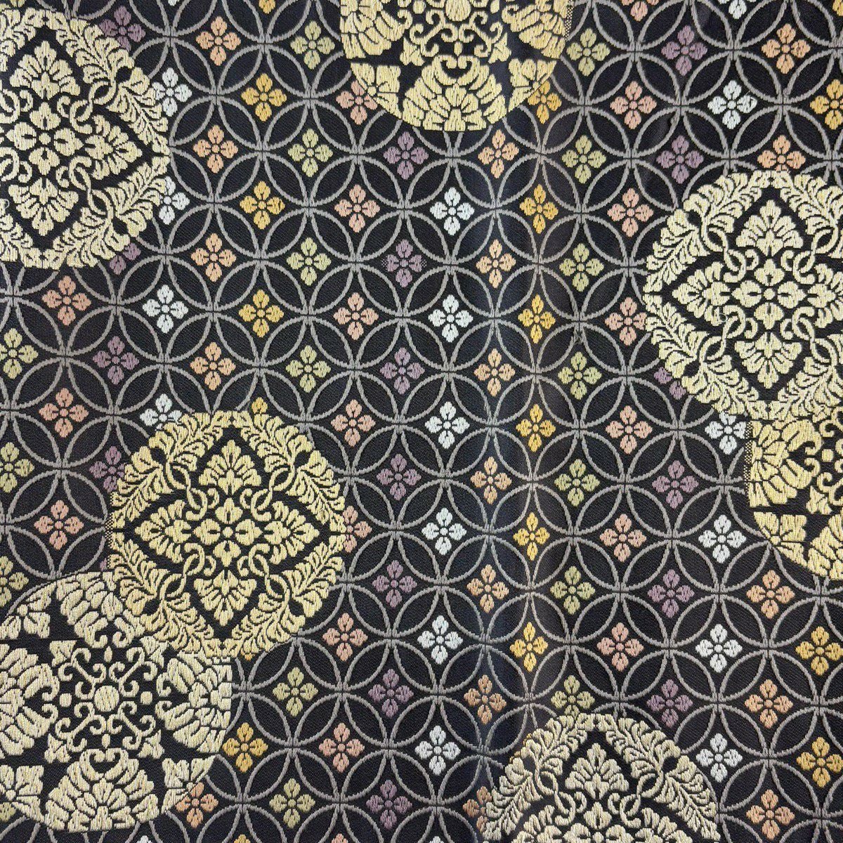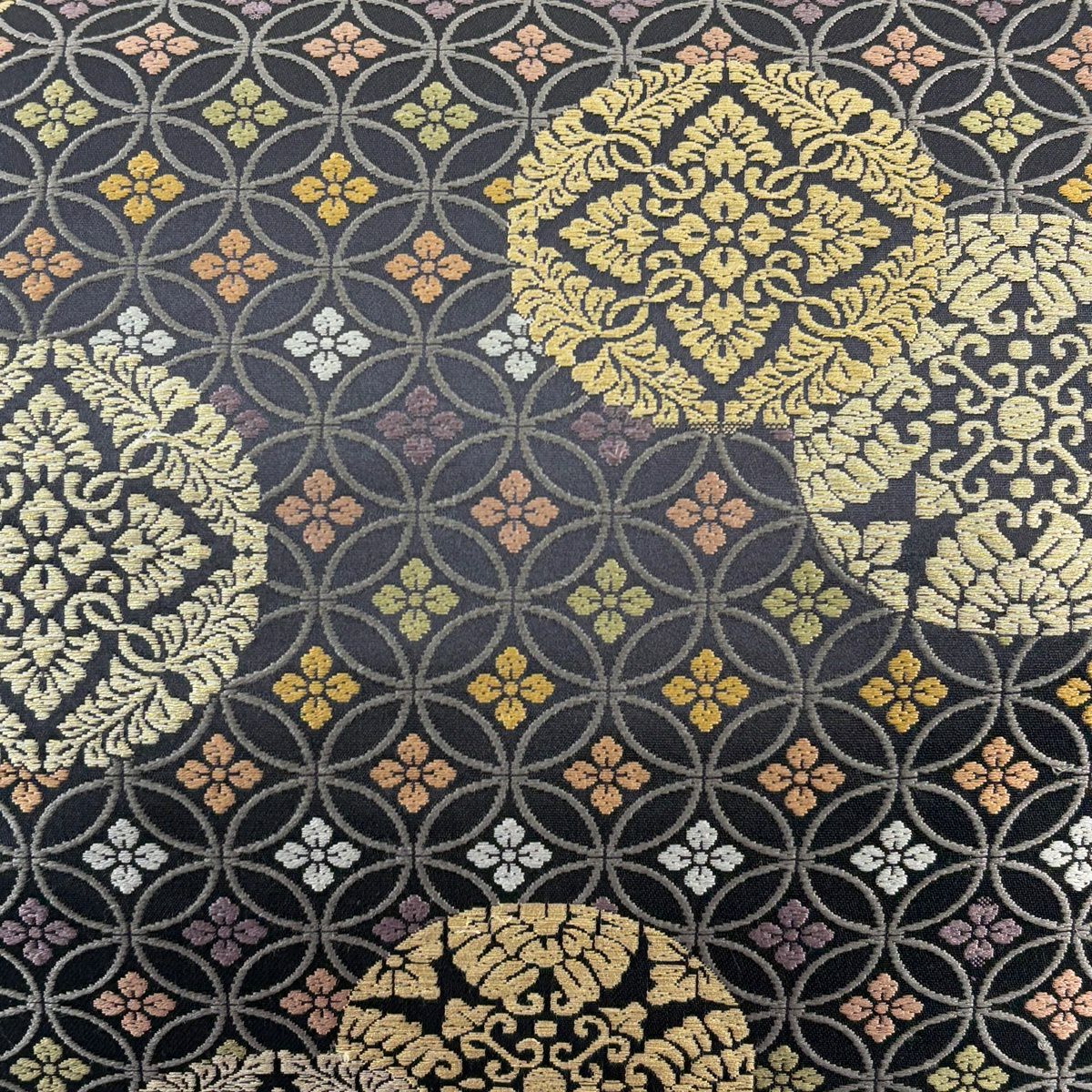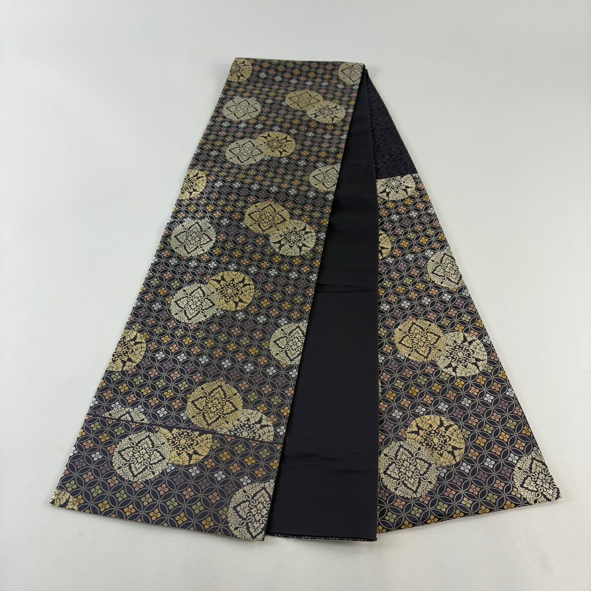 袋帯 名品 草花 蜀江文 金銀糸 箔 黒 六通 正絹
