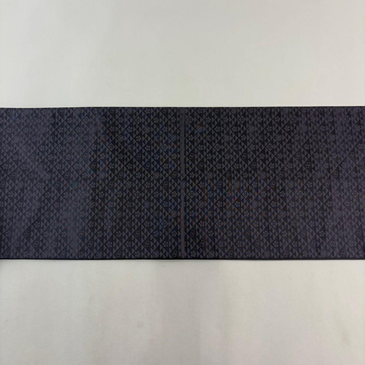 名古屋帯 秀品 紬地 幾何学模様 灰緑 正絹