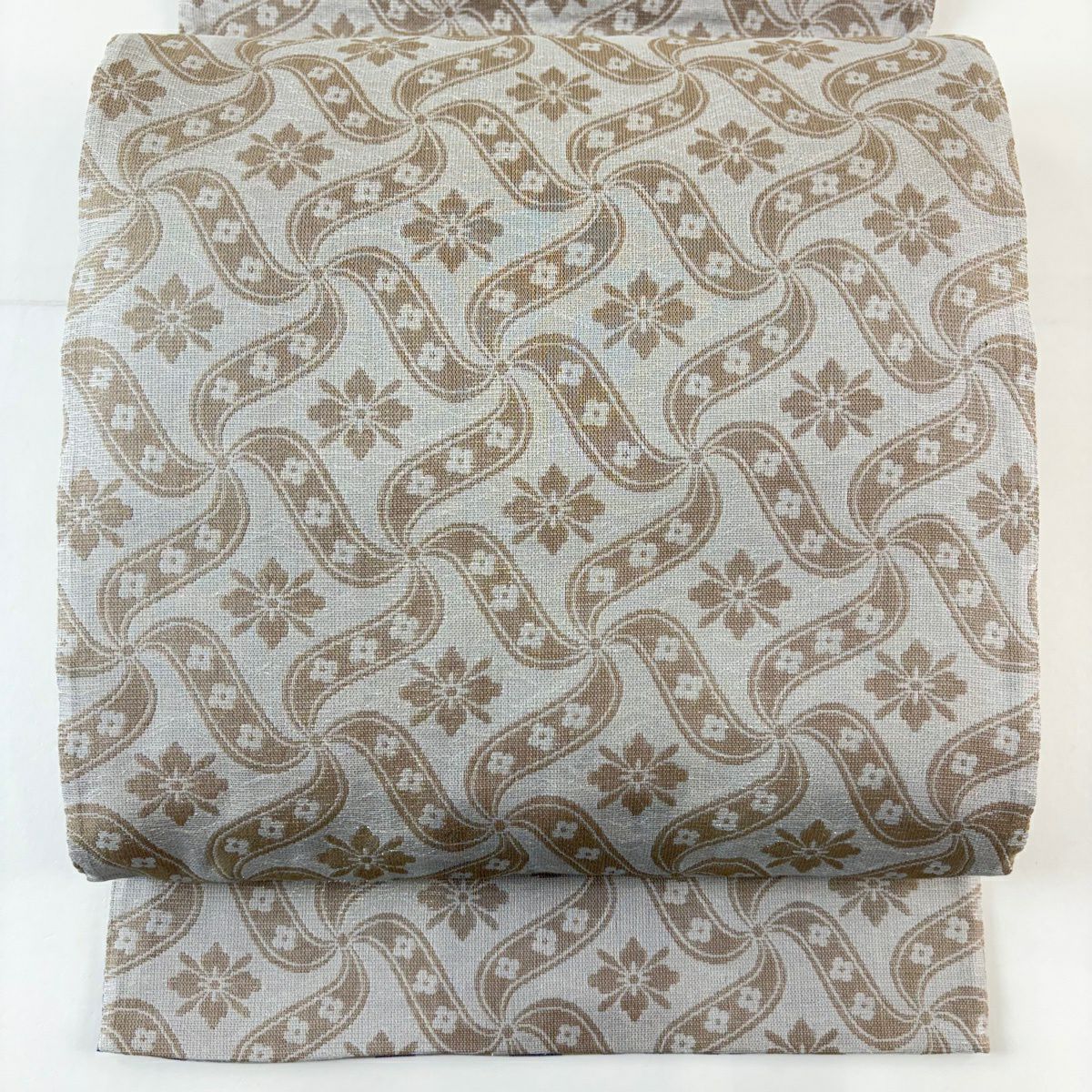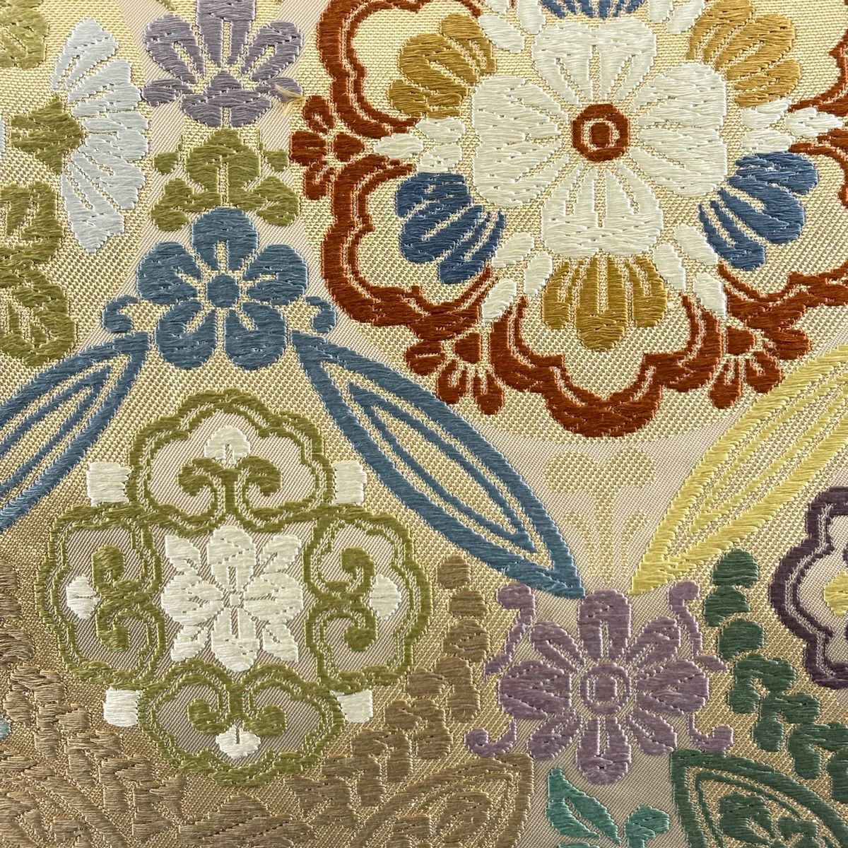 袋帯 秀品 関西仕立て 雪輪 草花 唐織 箔 クリーム 六通 正絹