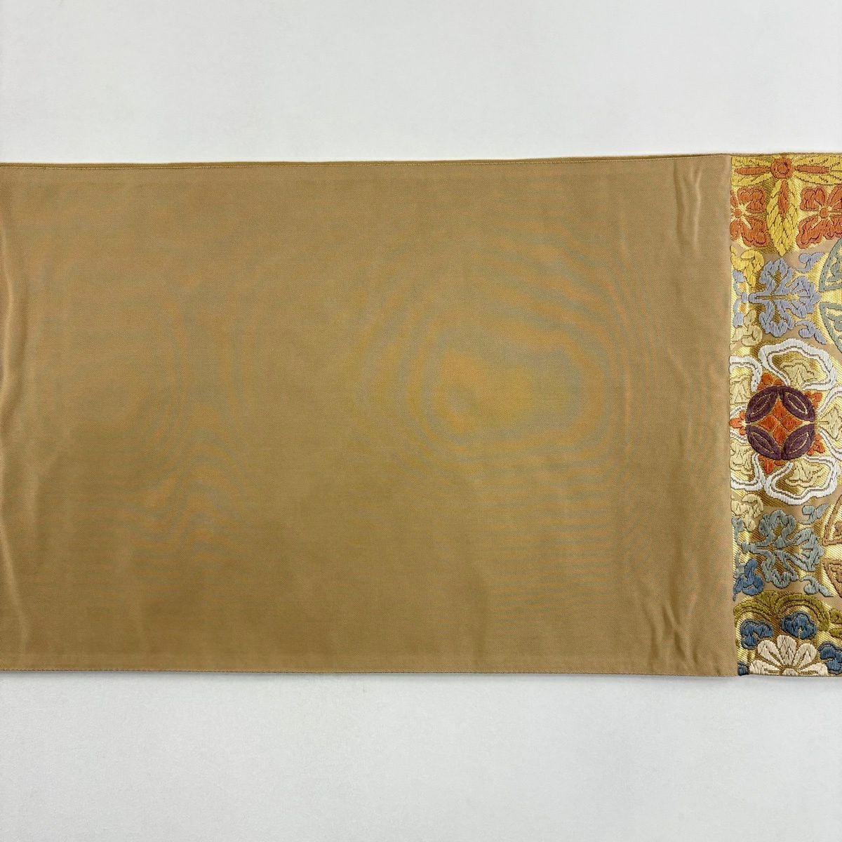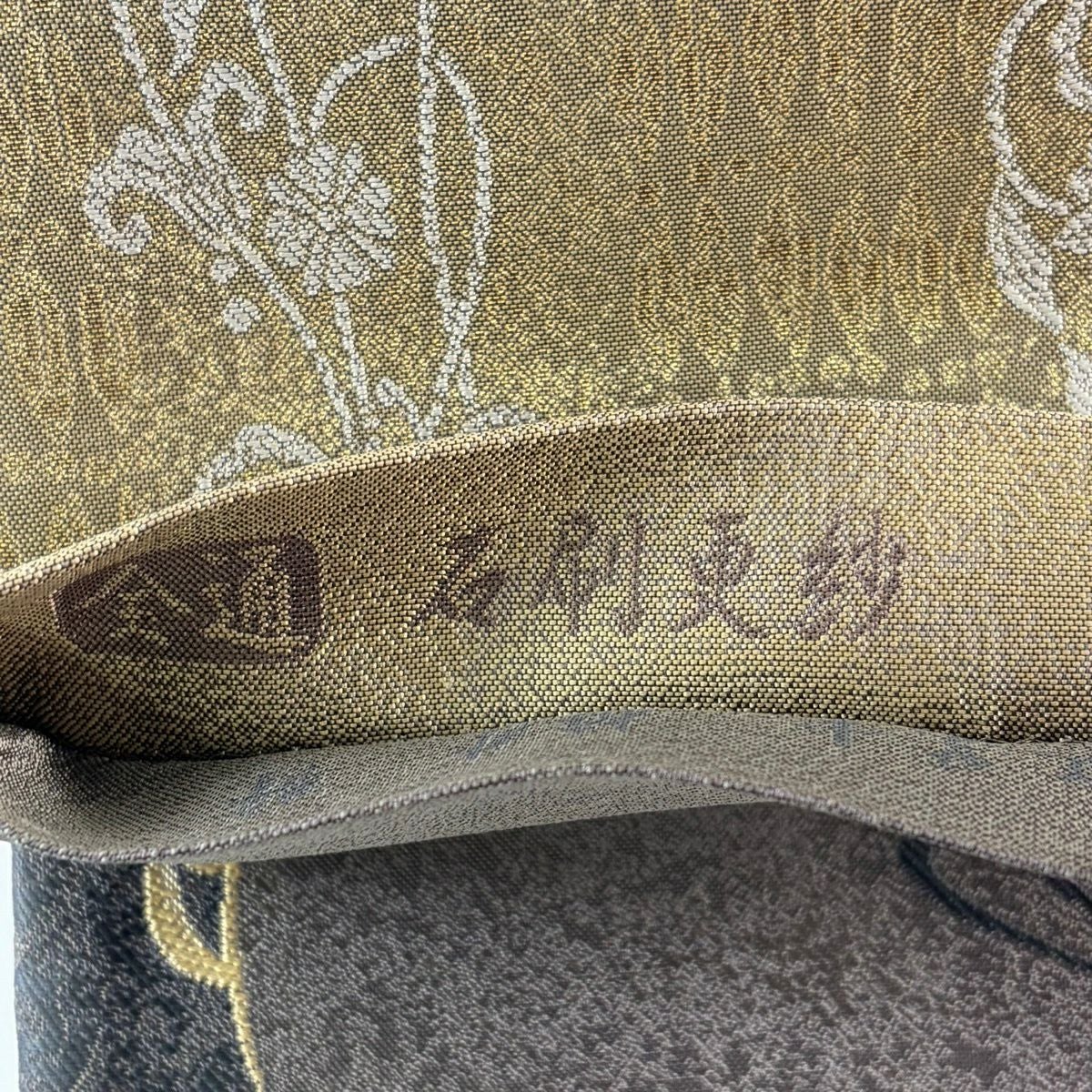 【美品】 袋帯 名品 華文 金糸 山吹茶色 六通 正絹