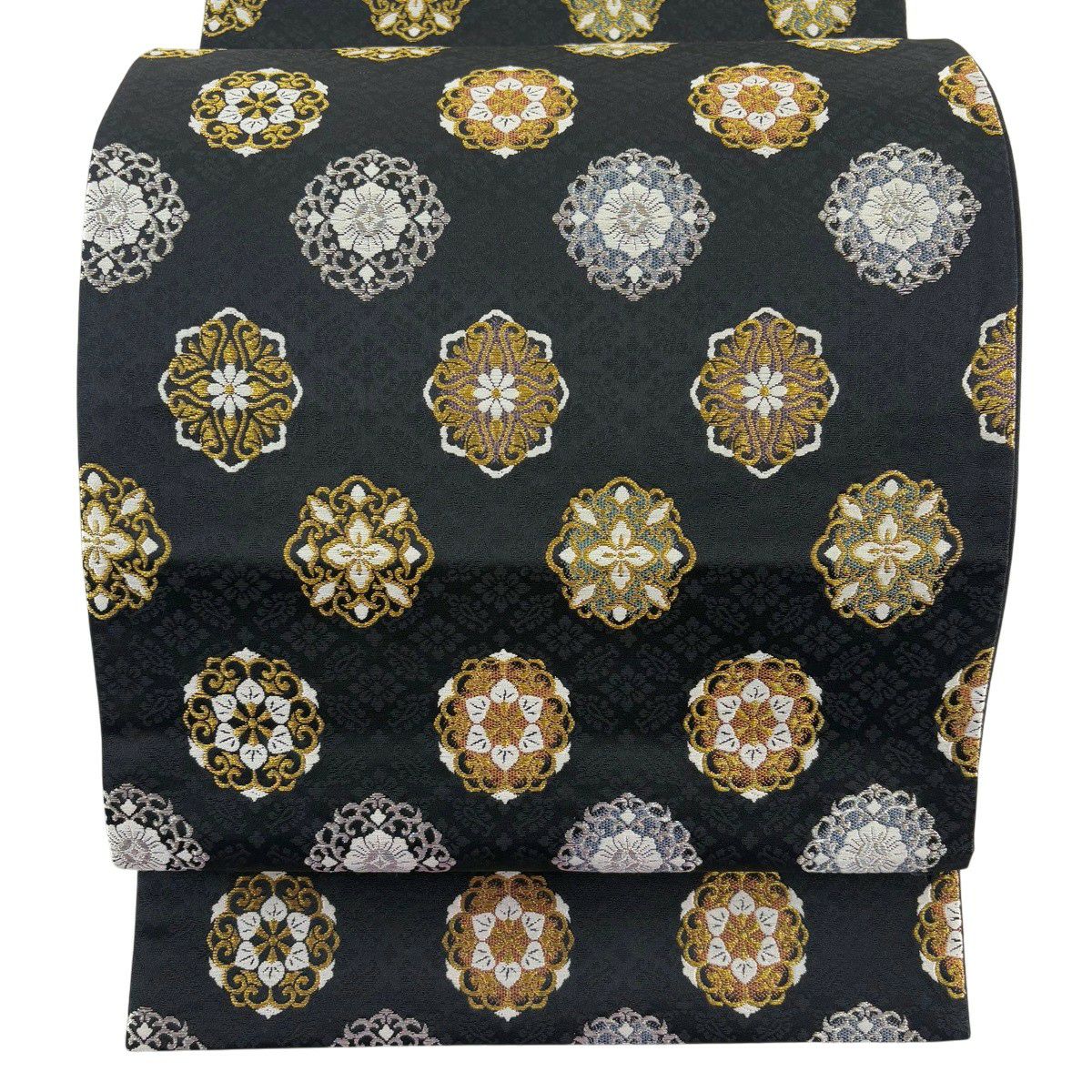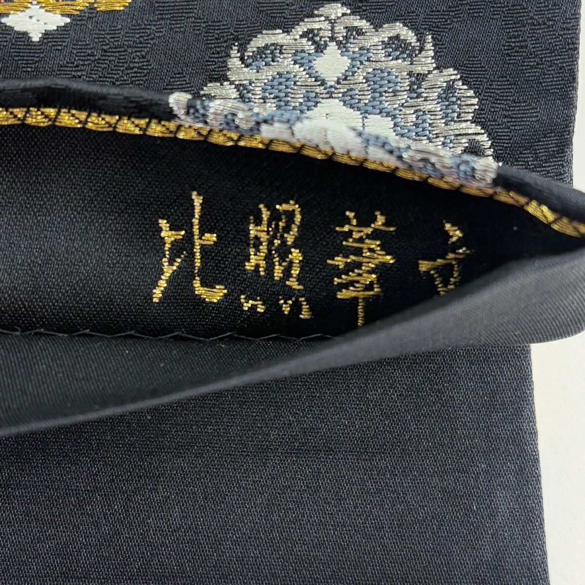 袋帯 秀品 桜 源氏車 金銀糸 刺繍 墨色 六通 正絹