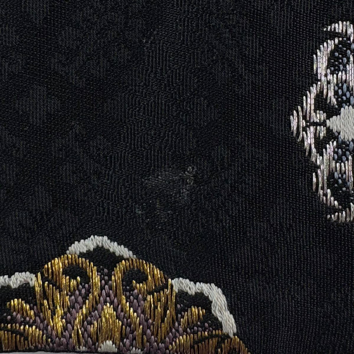 【美品】 袋帯 秀品 人物 草花 箔 黒 六通 正絹