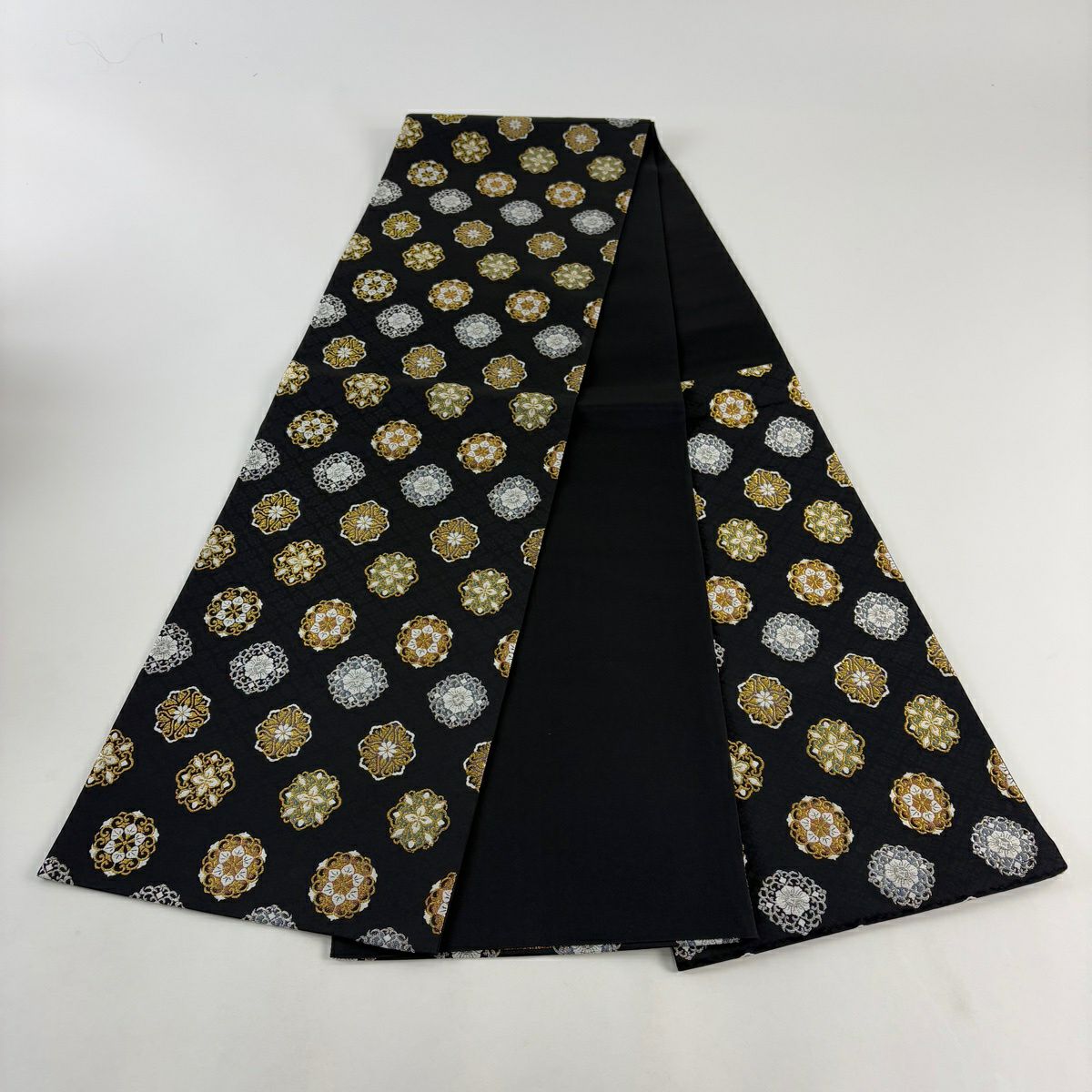 袋帯 秀品 扇面 草花 刺繍 箔 金色 六通 正絹