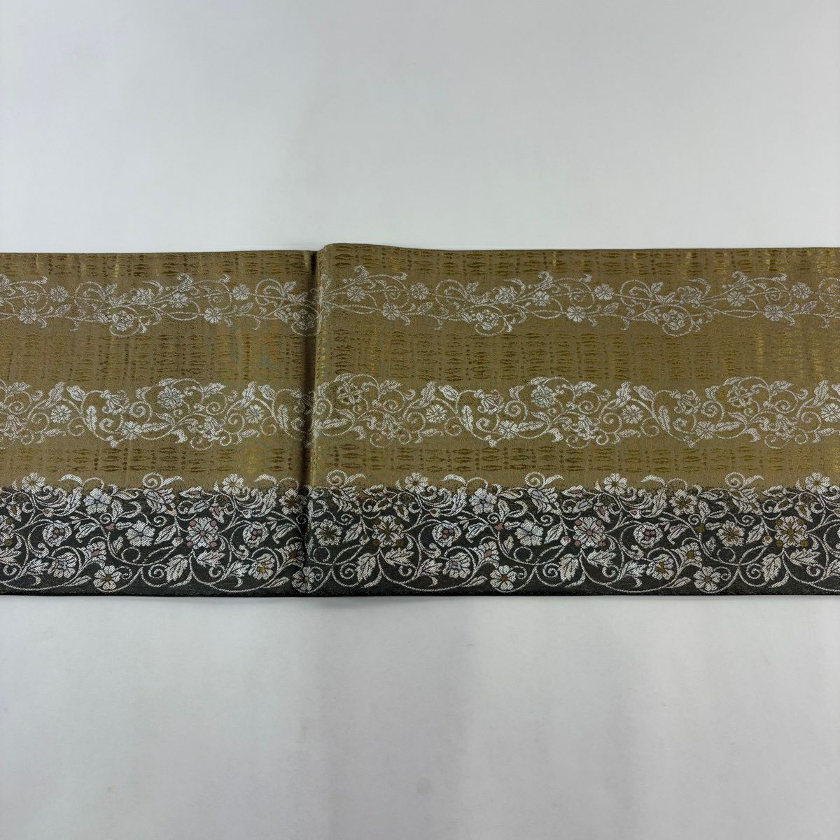 【美品】 袋帯 名品 草花 華文 金糸 箔 灰緑 お太鼓柄 正絹