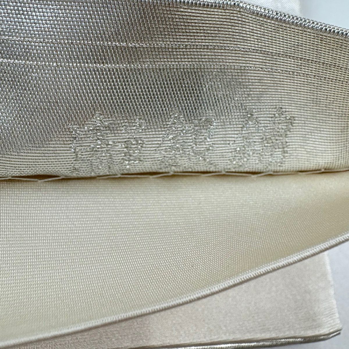 袋帯 秀品 華文 斜縞 螺鈿 金銀彩 ベージュ お太鼓柄 正絹