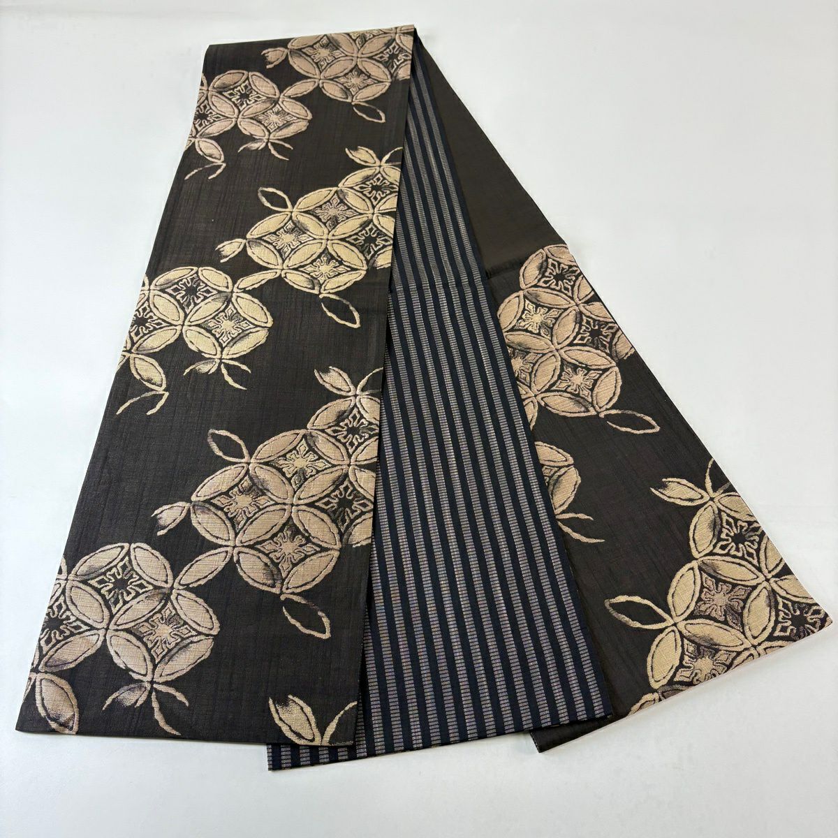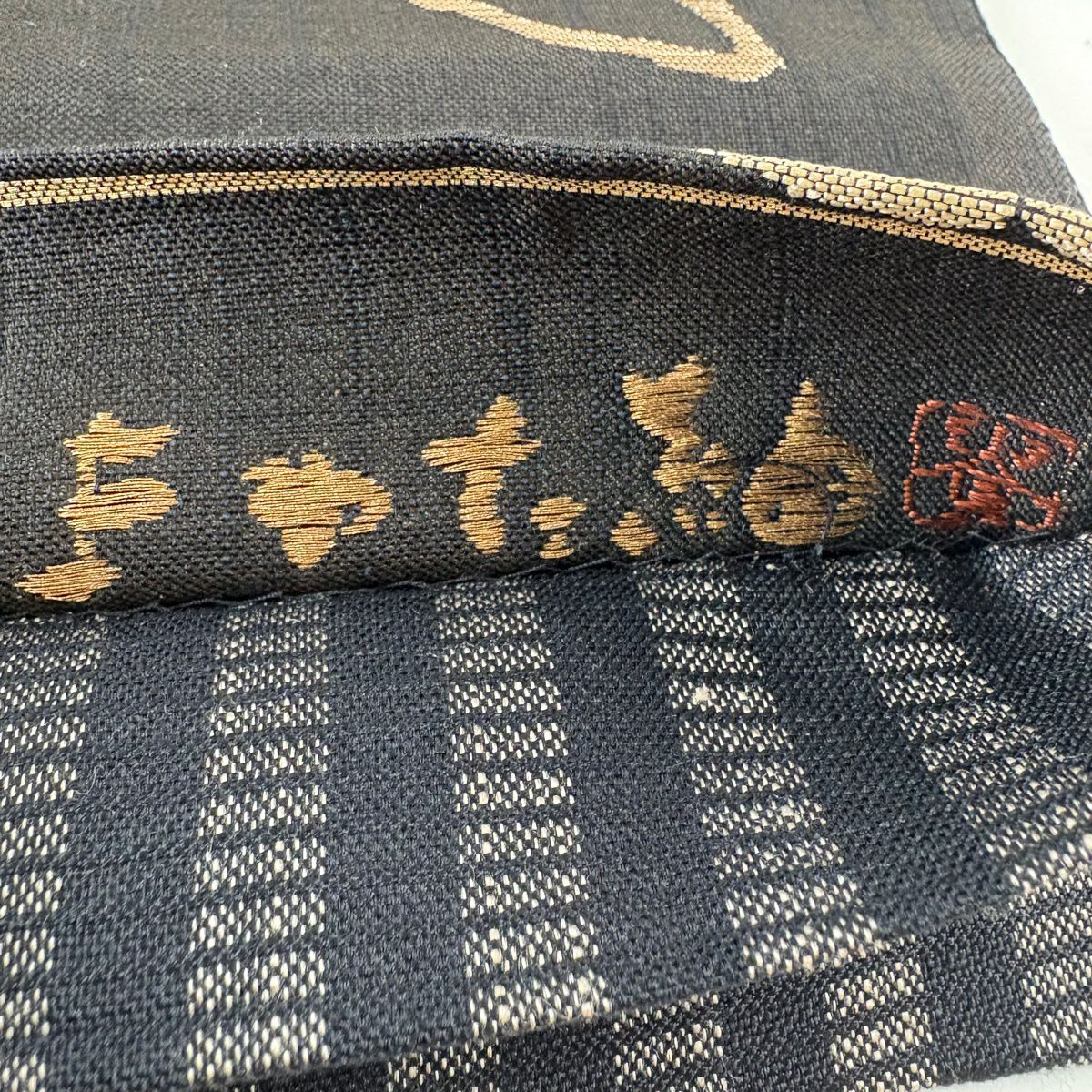 【美品】 袋帯 名品 縞 金糸 灰色 全通 正絹