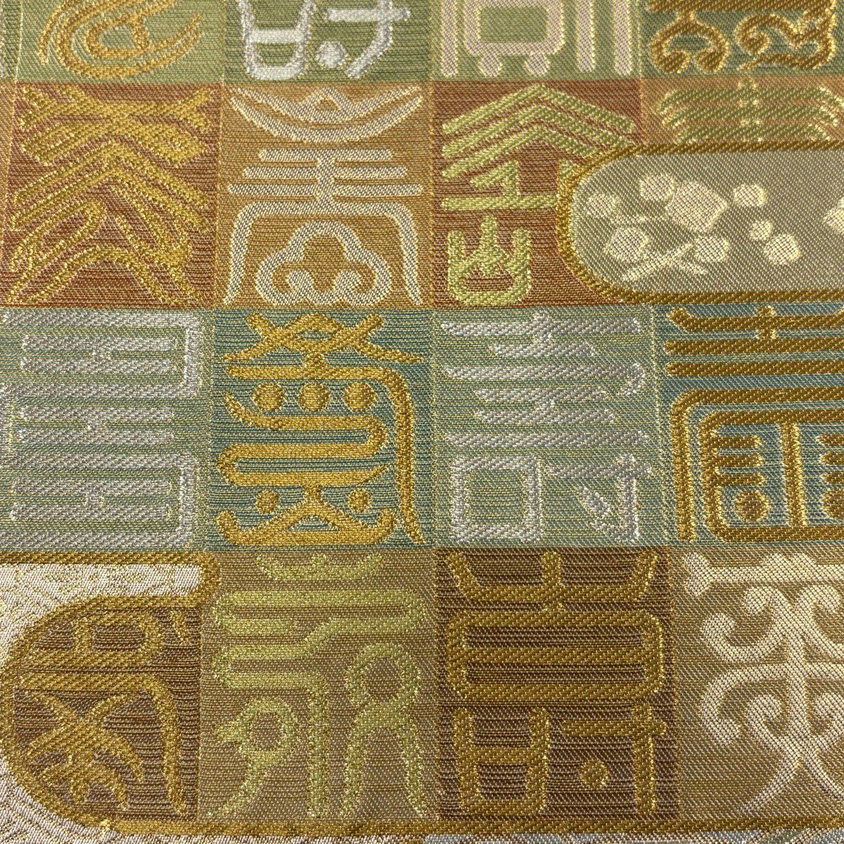 袋帯 名品 市松 よろけ縞 金銀糸 薄緑 全通 正絹