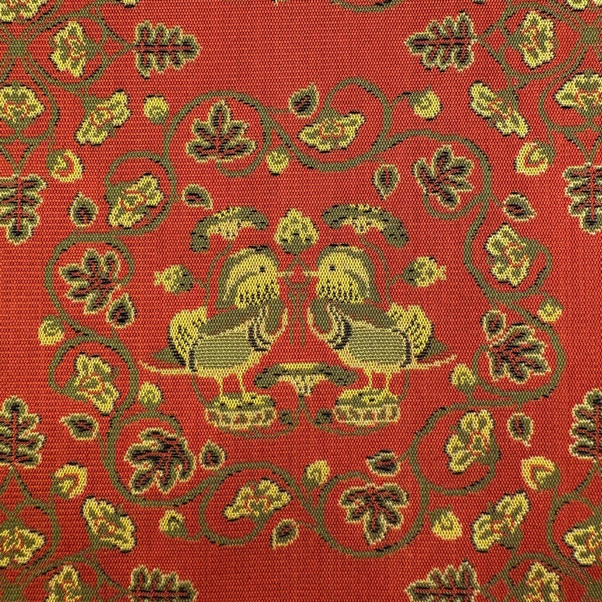 【美品】 開き名古屋帯 名品 龍村美術織物 落款あり 向かい鳥 華文 金糸 朱色 正絹