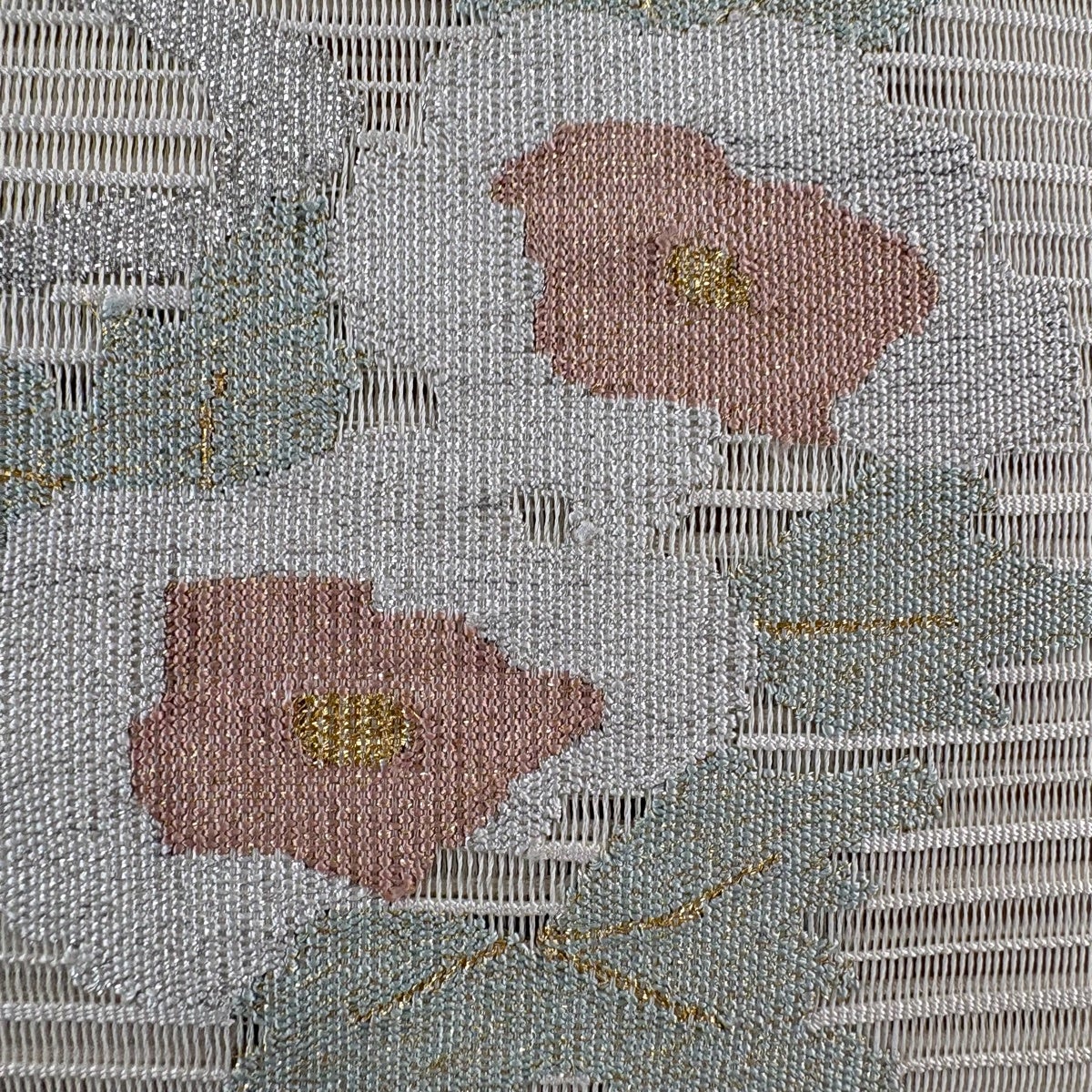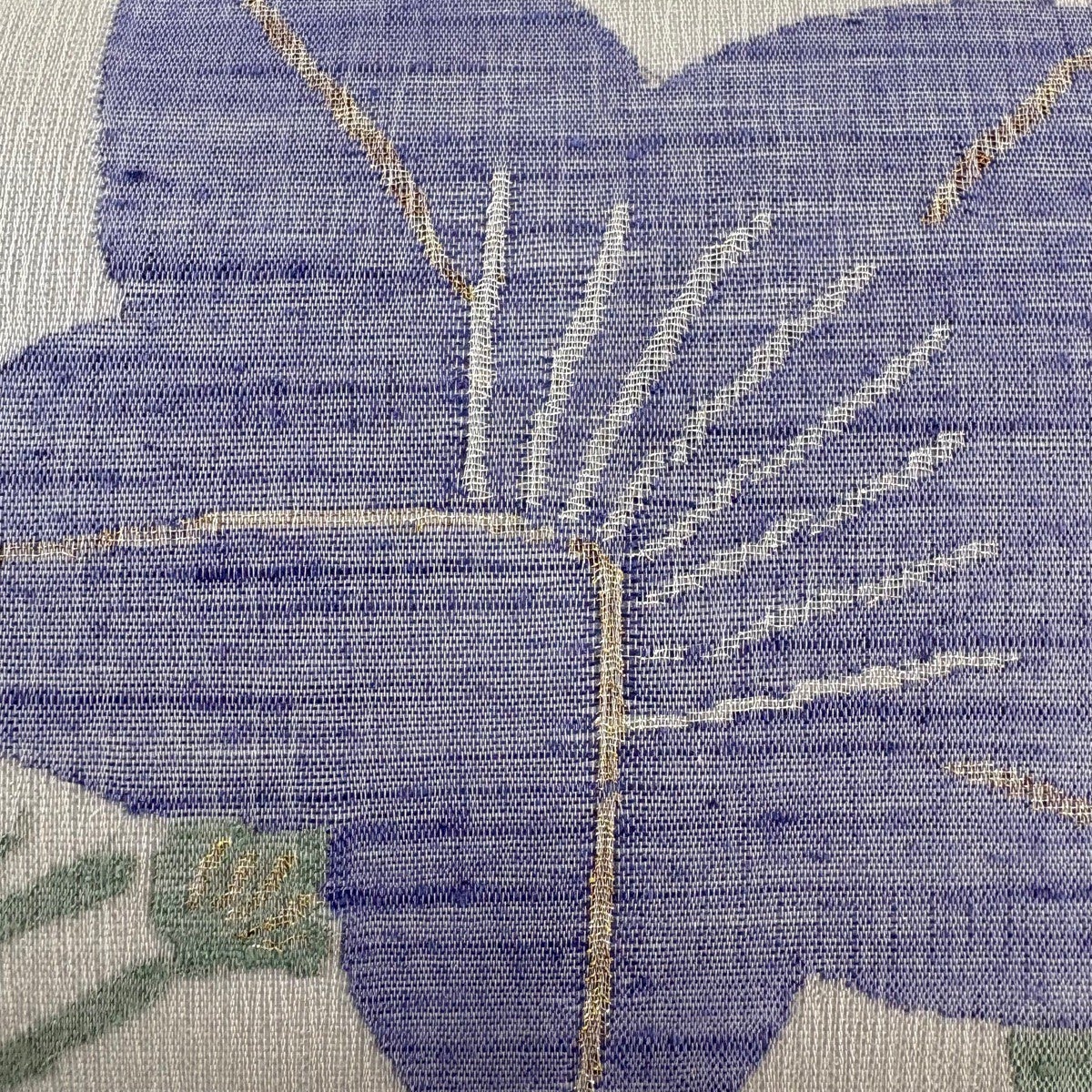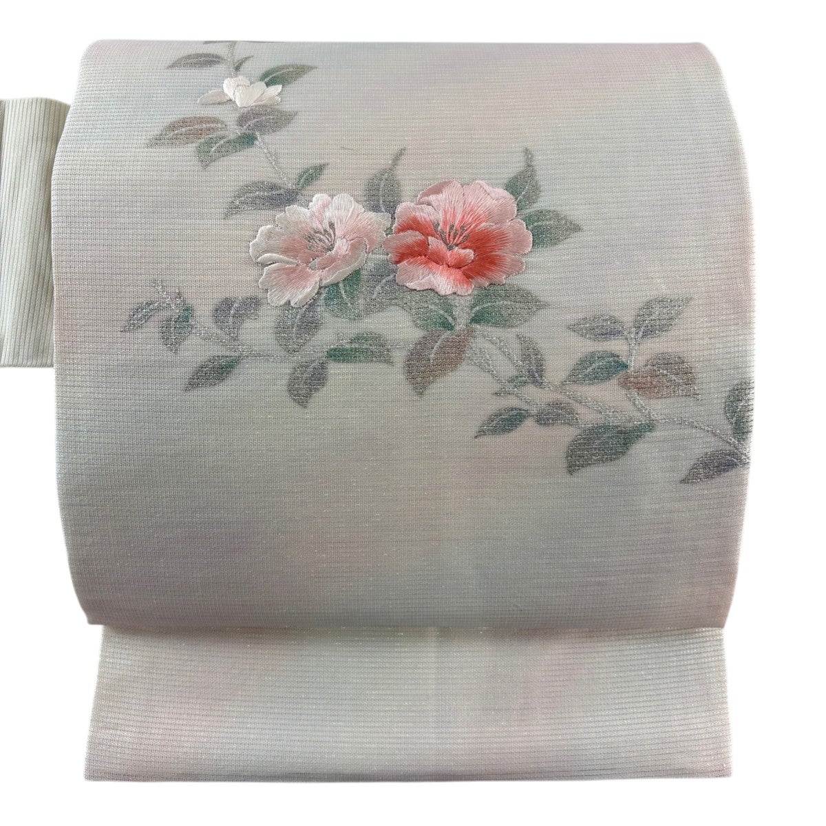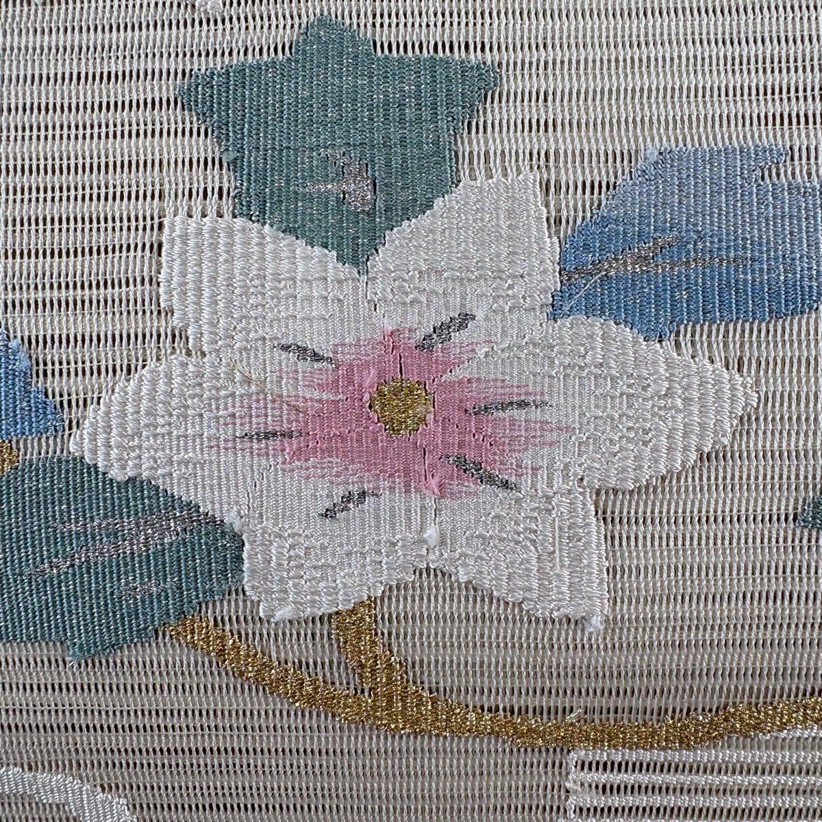 名古屋帯 秀品 花 霞 刺繍 青灰色 正絹