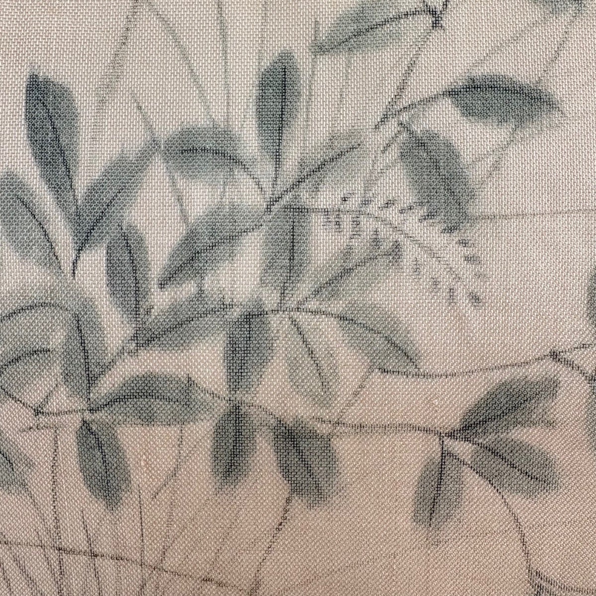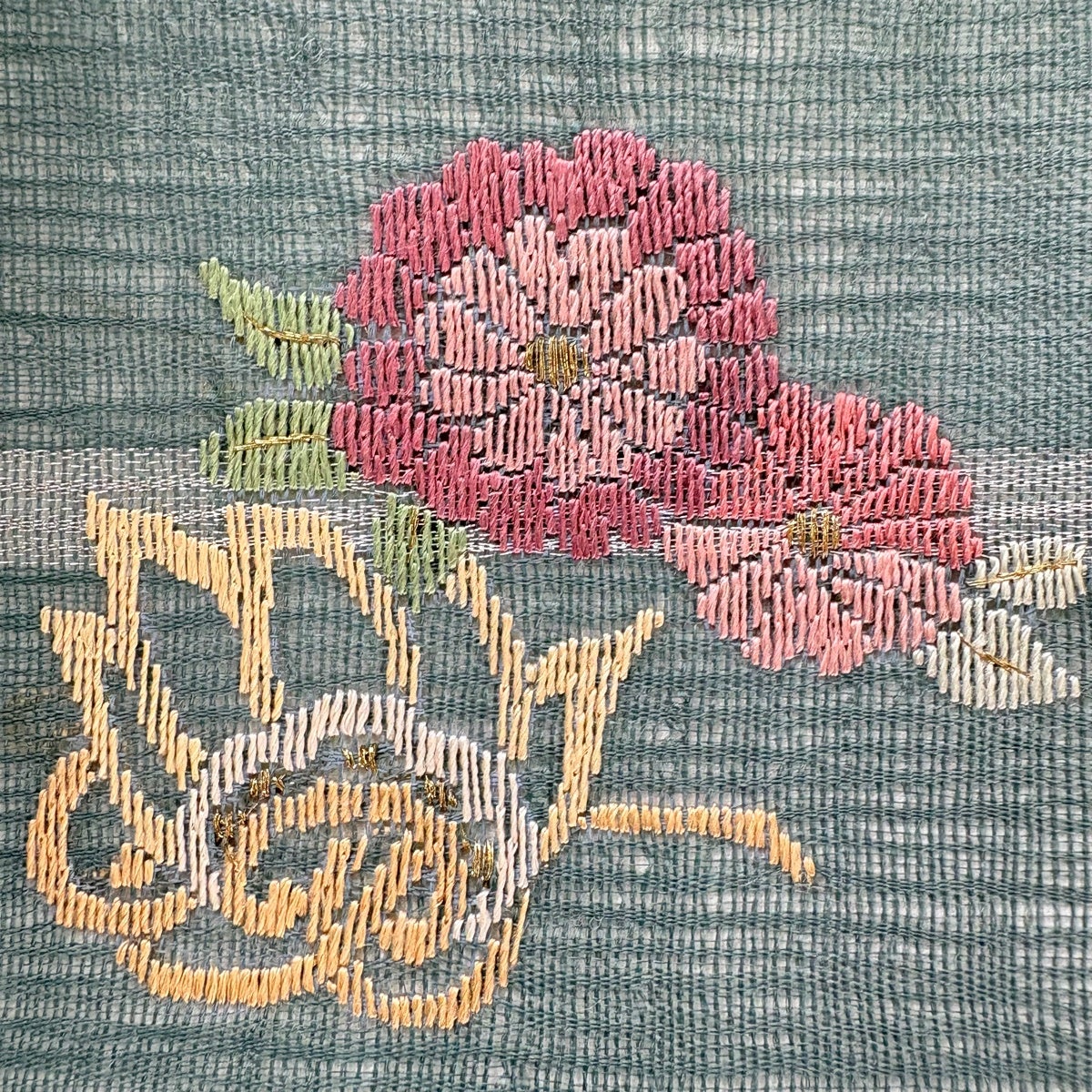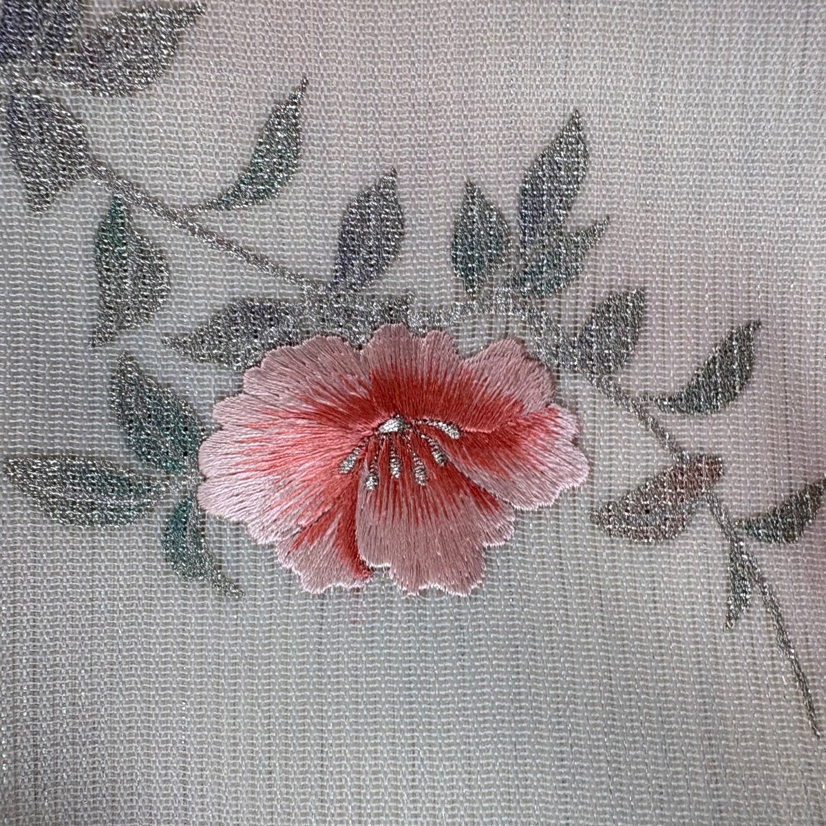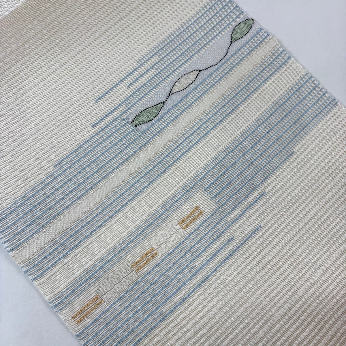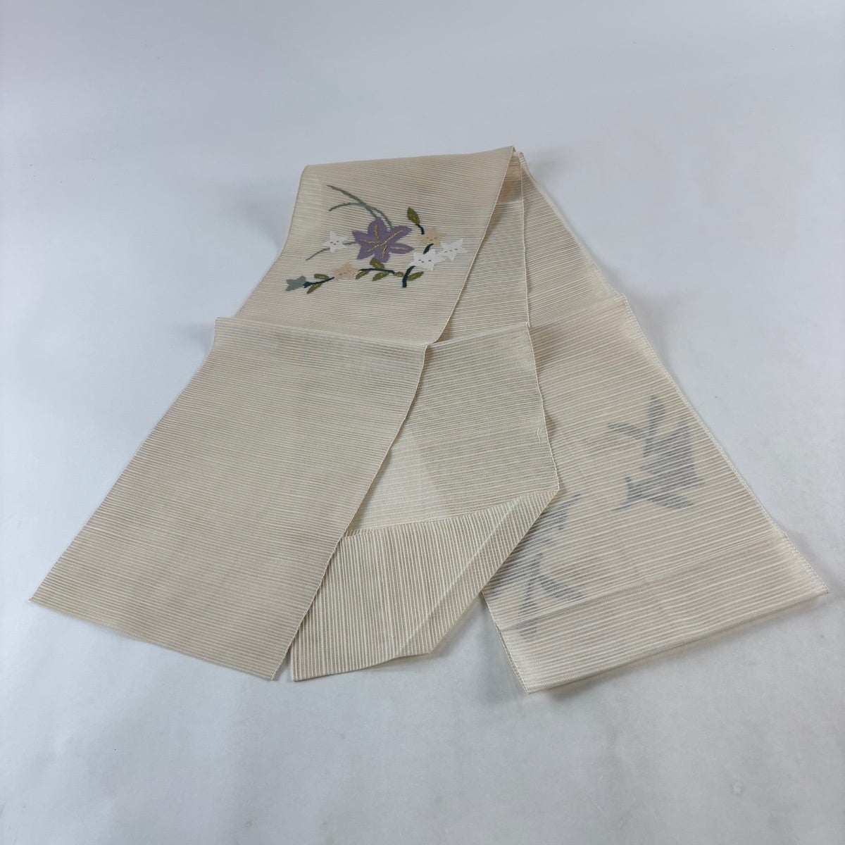 名古屋帯 秀品 花 霞 刺繍 青灰色 正絹