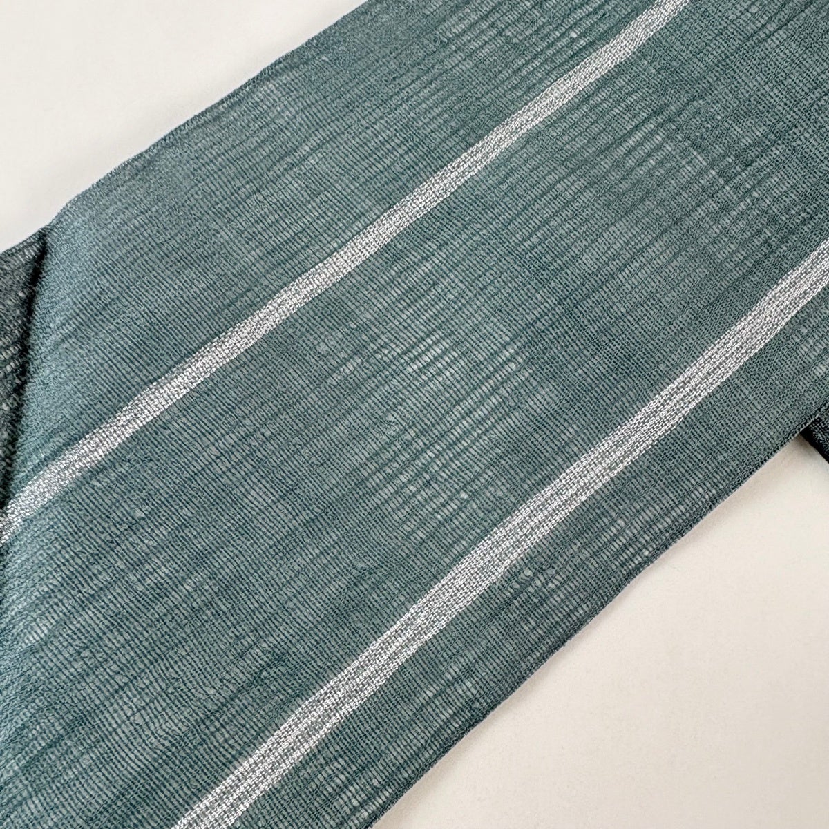 【美品】 名古屋帯 秀品 夏帯 絽 関西仕立て 笹 流水 箔 銀糸 ベージュ 正絹
