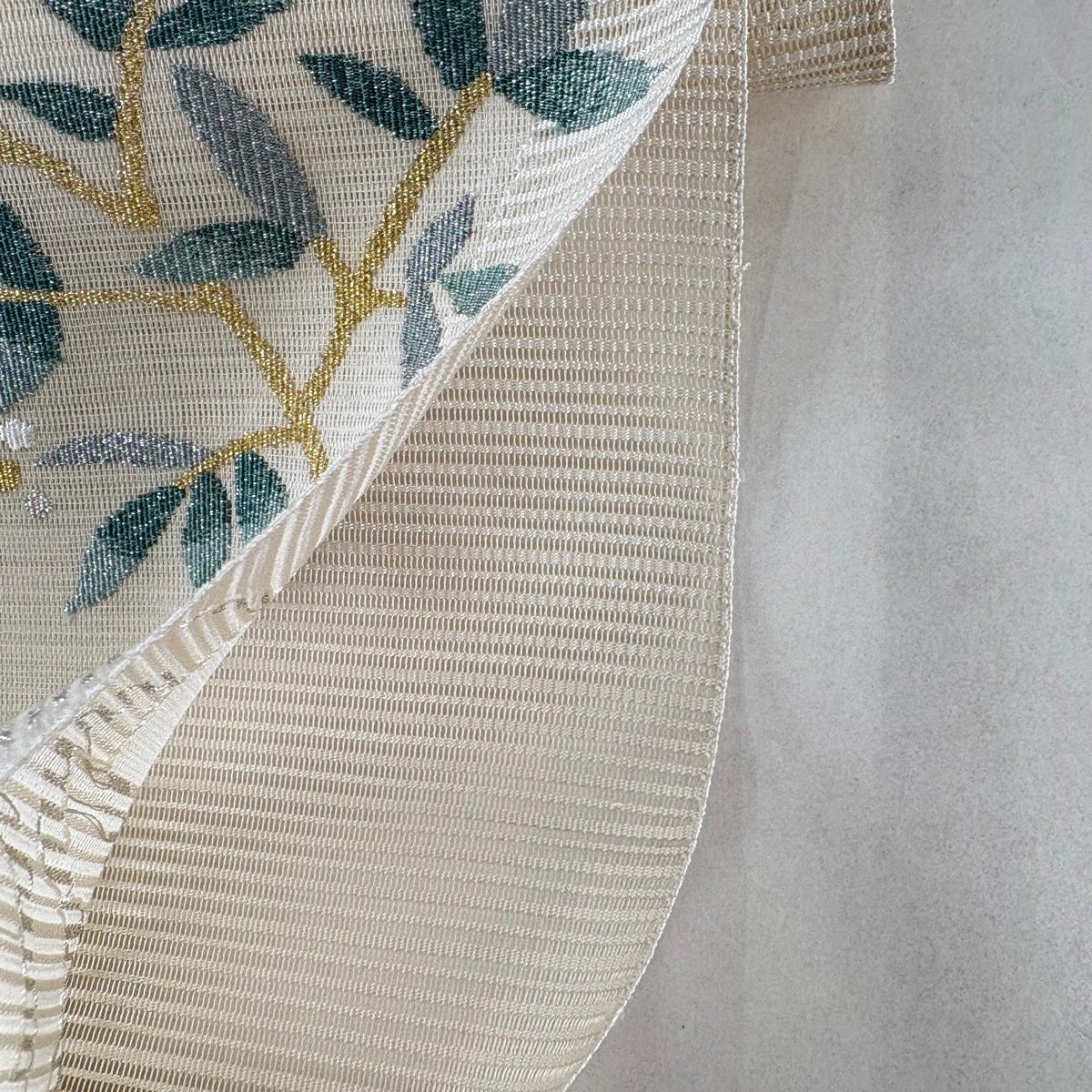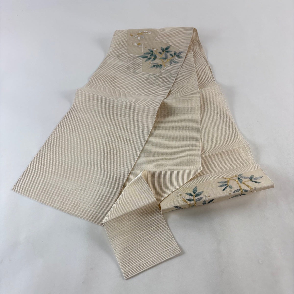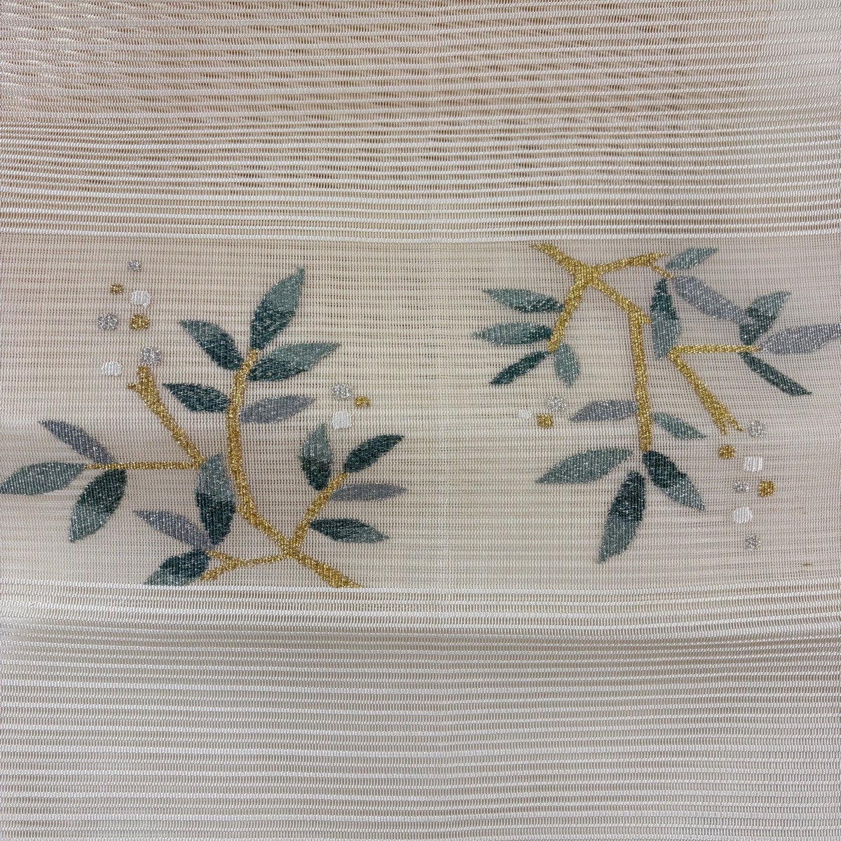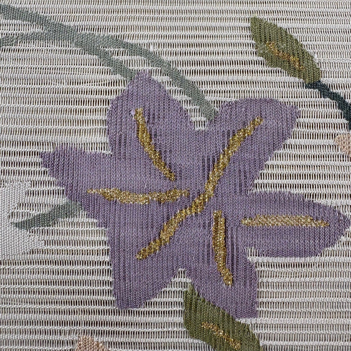 【美品】 名古屋帯 秀品 夏帯 絽 八寸名古屋帯 松葉仕立て 草花 金糸 ベージュ 正絹